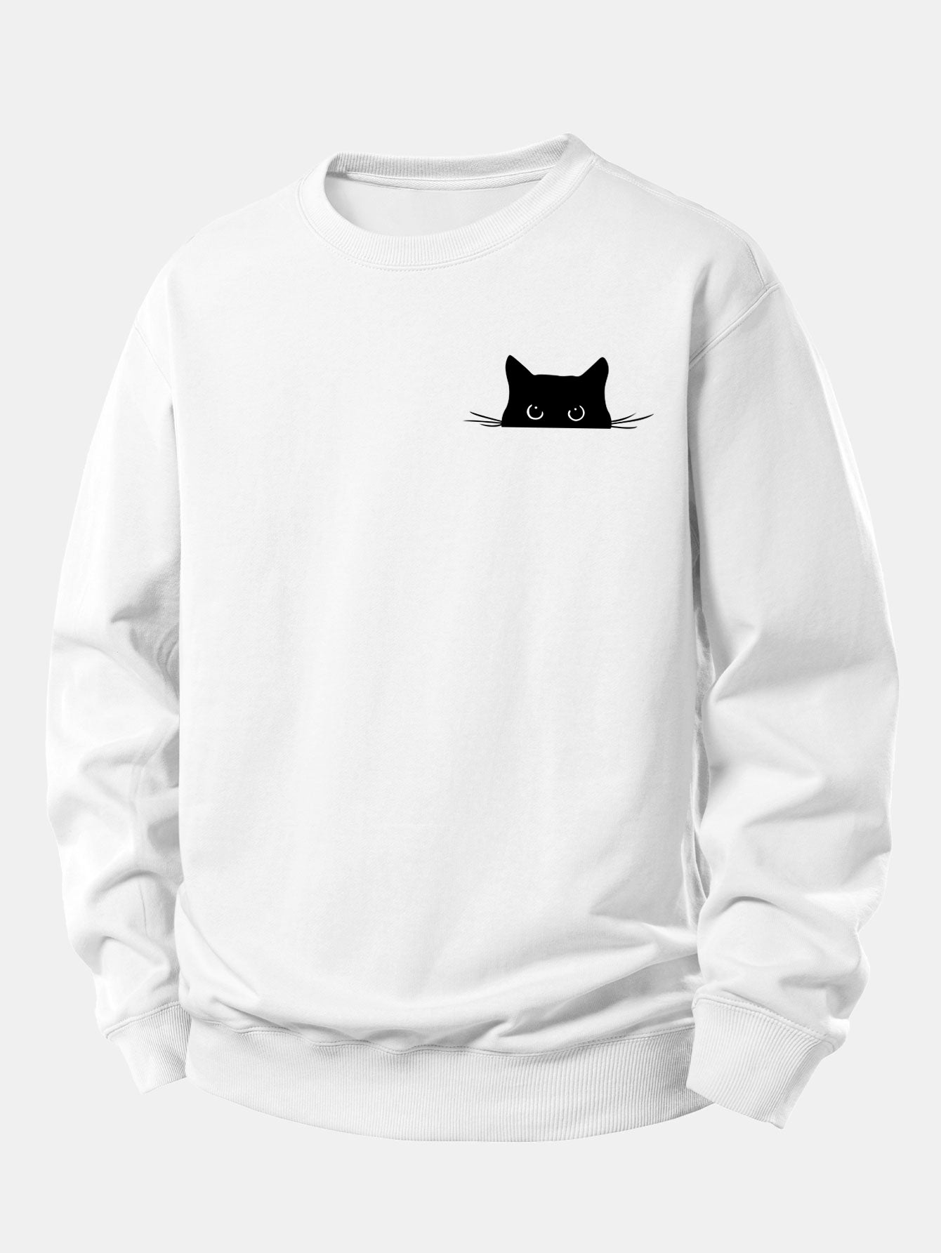 Black Cat Drinking Coffee Print Relax Fit Sweatshirt
