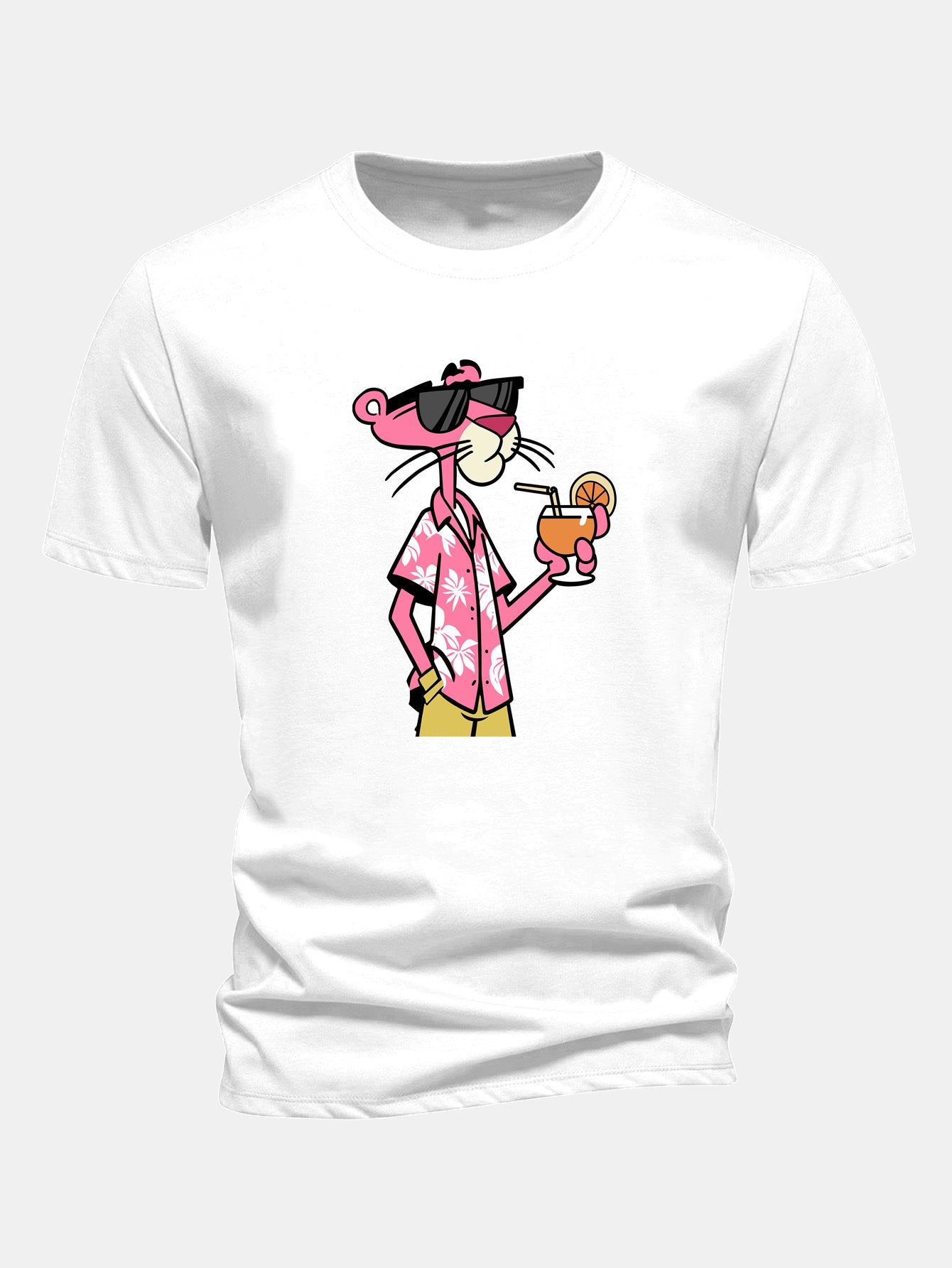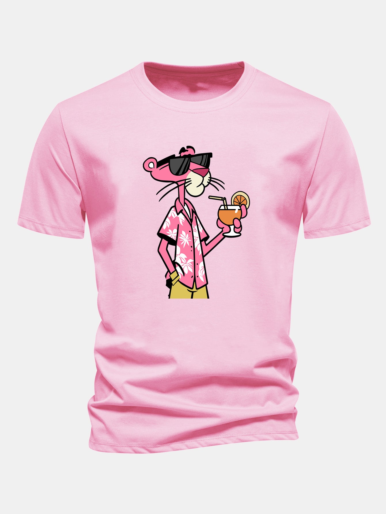 Regular Fit Vacation Pink Panther Print Cotton T-Shirt