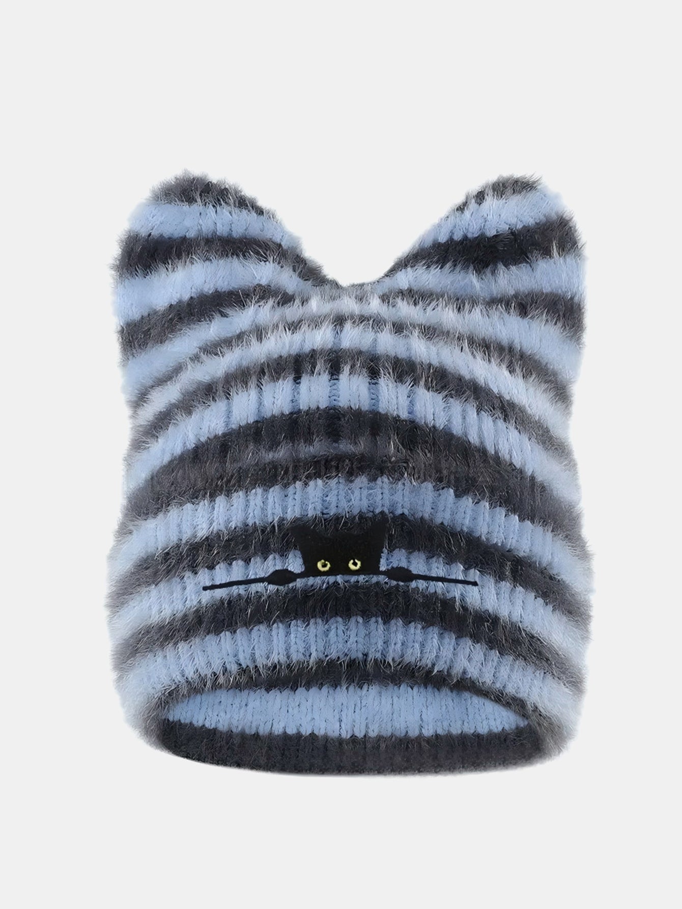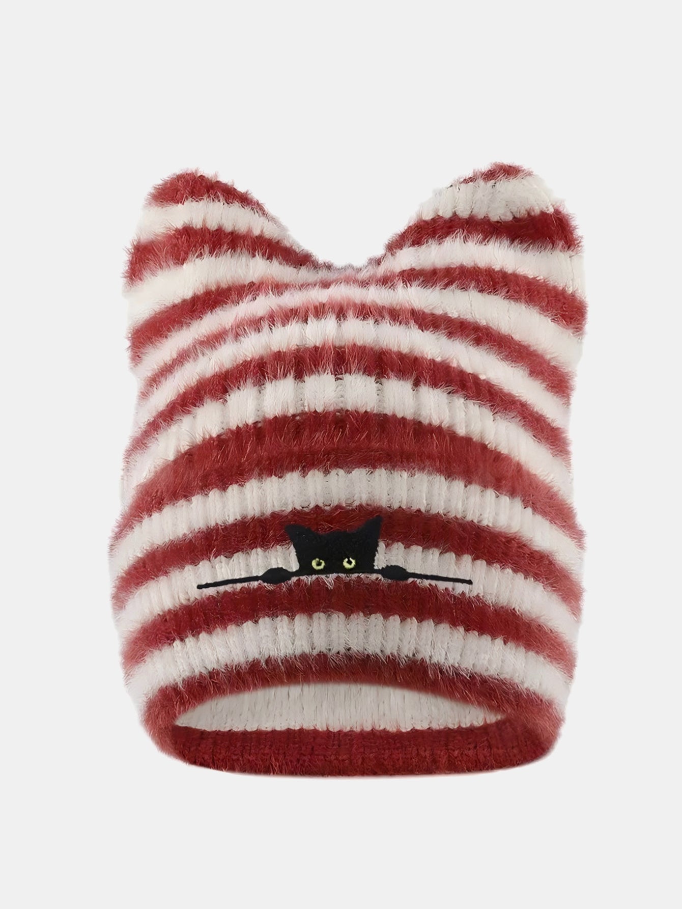 Black Cat Embroidered Thick Plush Cat Ear Beanie Hat