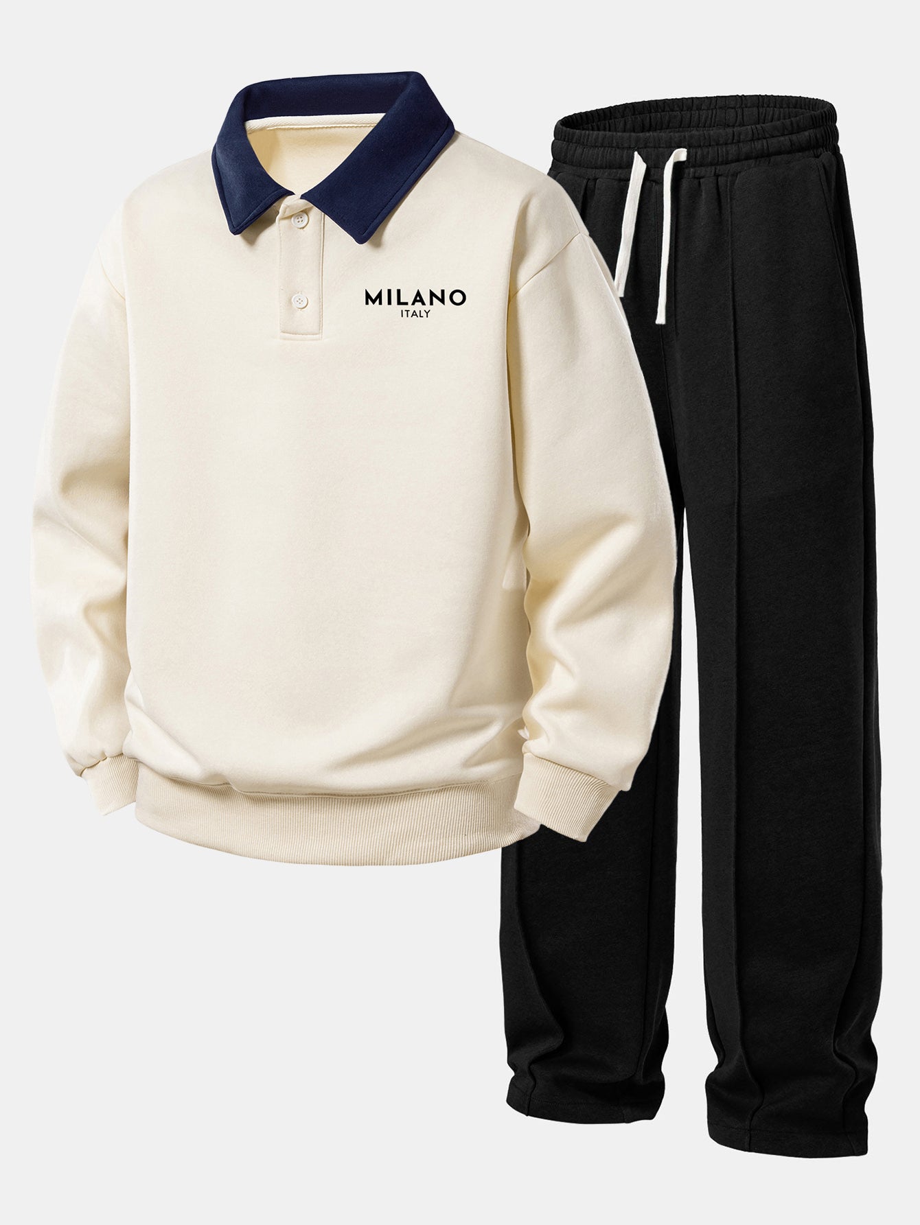 Relax Fit Milano Print Contrast Polo Sweatshirt & Straight Leg Pleated Pintuck Sweatpants