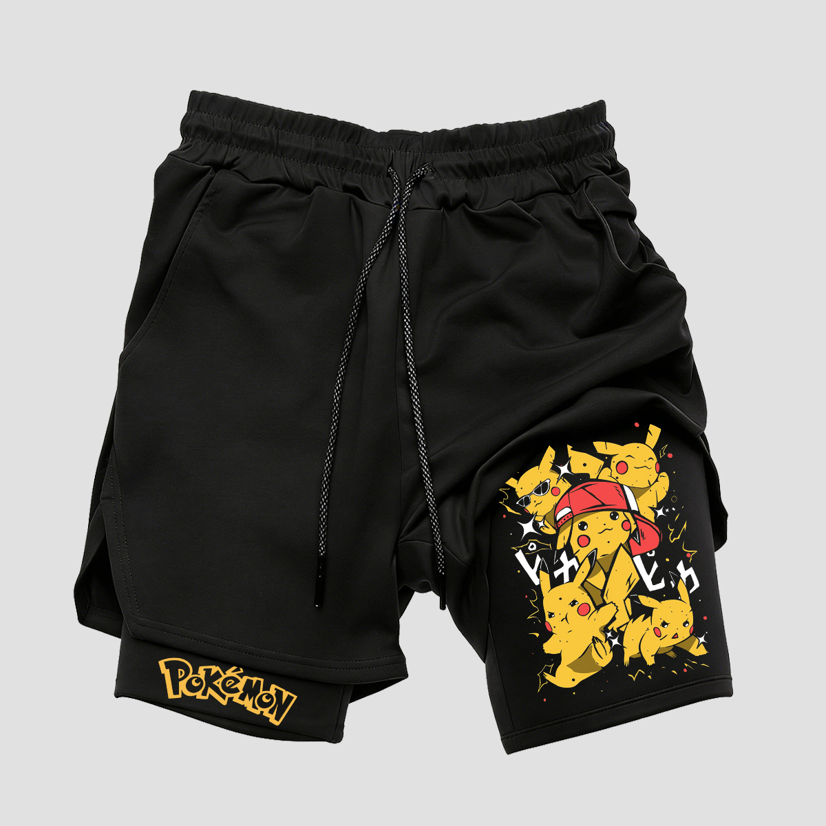 Pokémon Pikachu Print Men's All-In-One Fitness Shorts