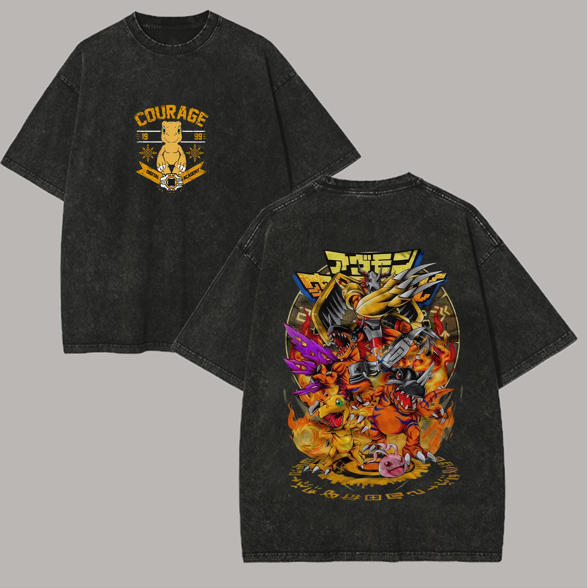 Digimon Agumon & WarGreymon Printed Unisex Washed T-Shirt