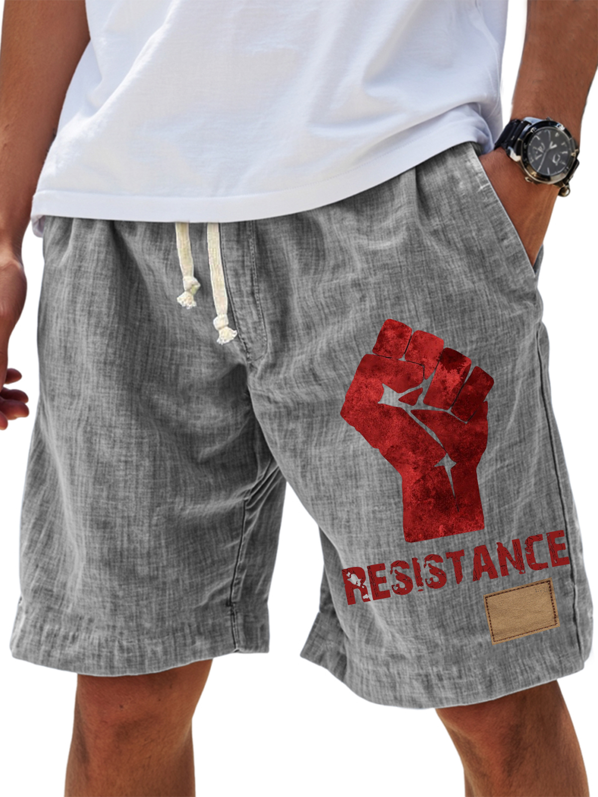Men's RESISTANCE printed casual lace-up shorts