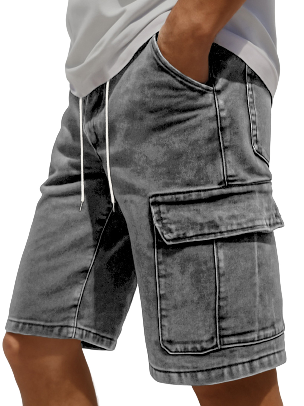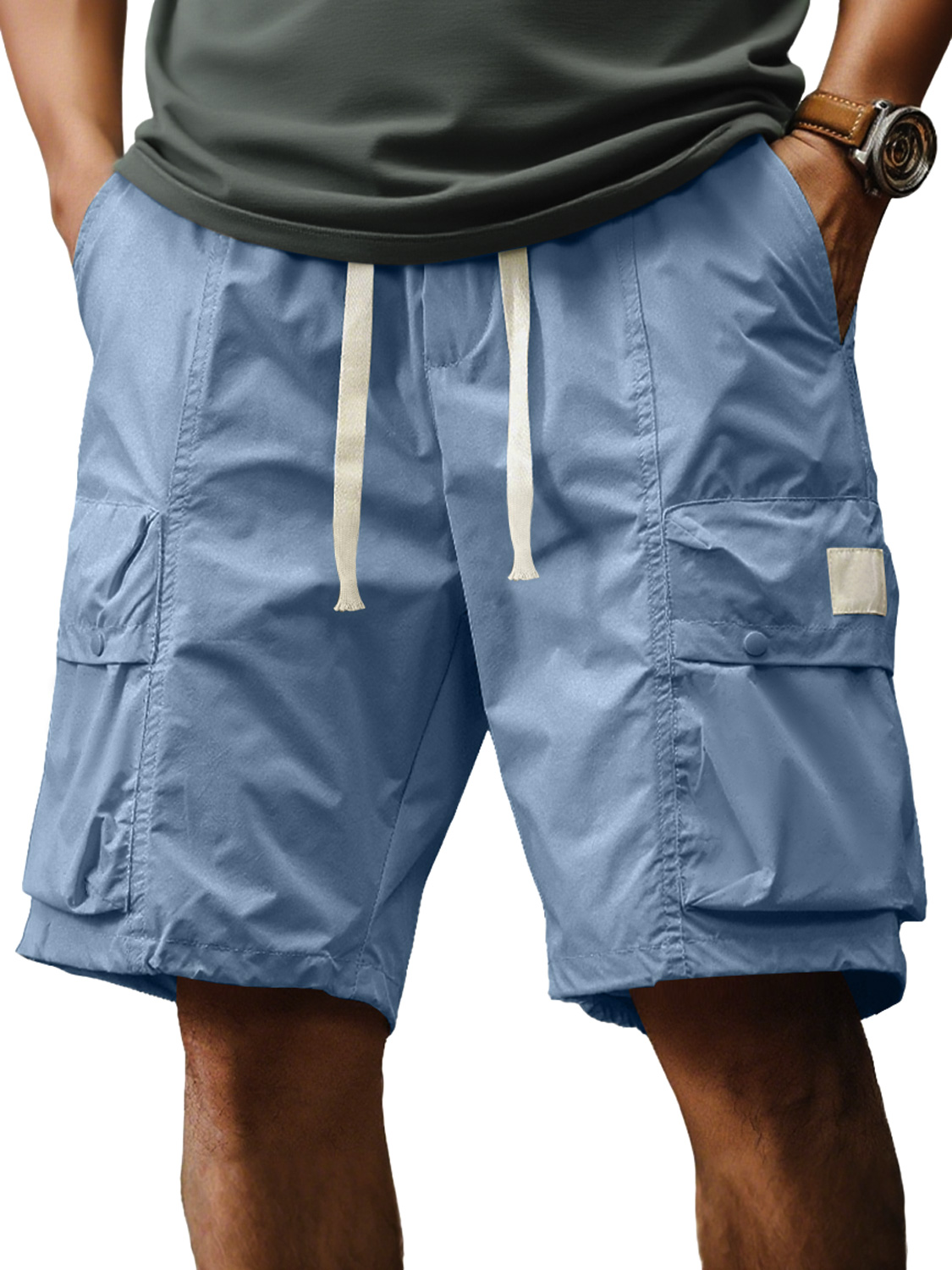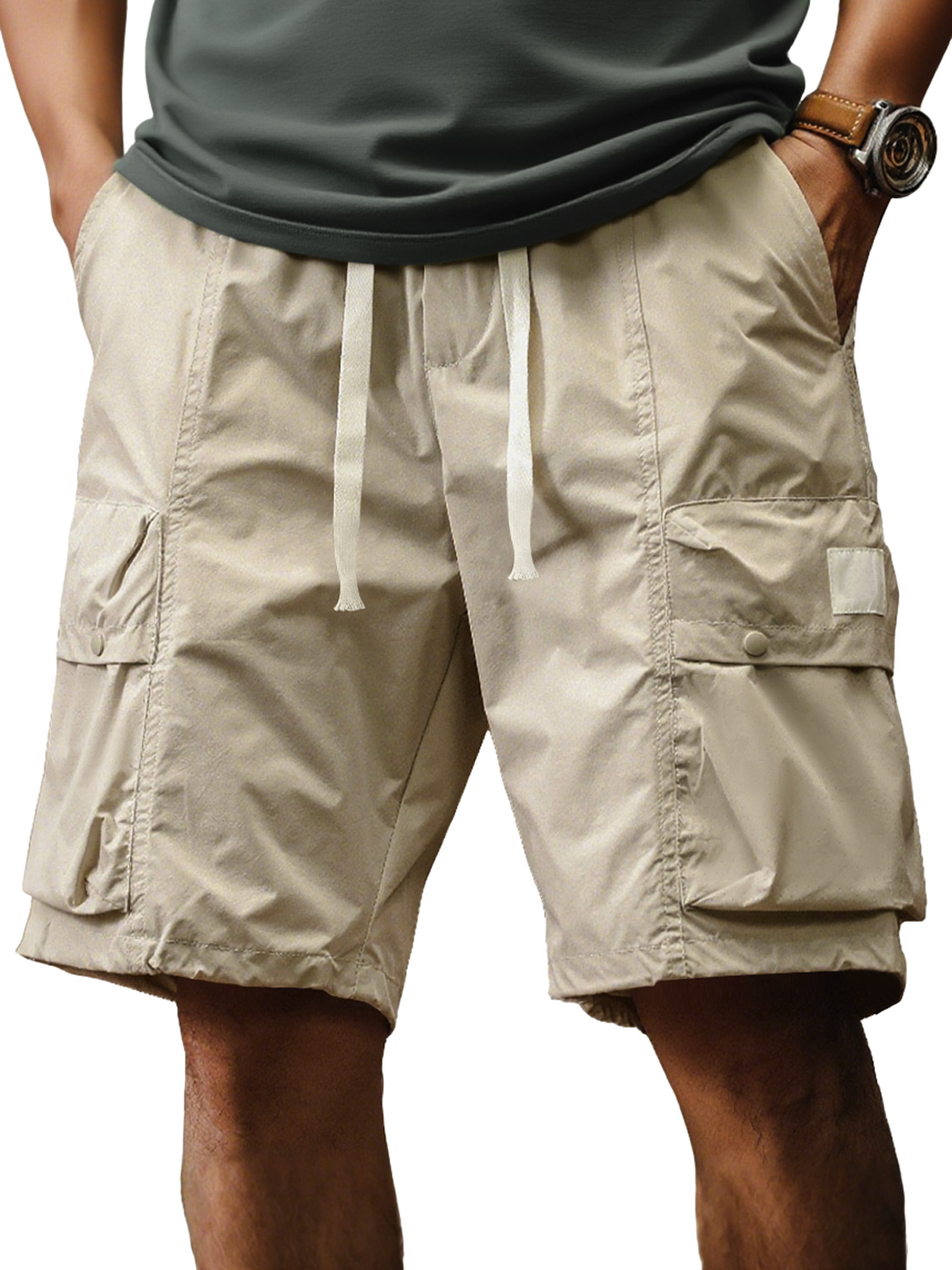 Men's Fashion Retro Outdoor Workwear Pocket Elastic Waist Drawstring Shorts