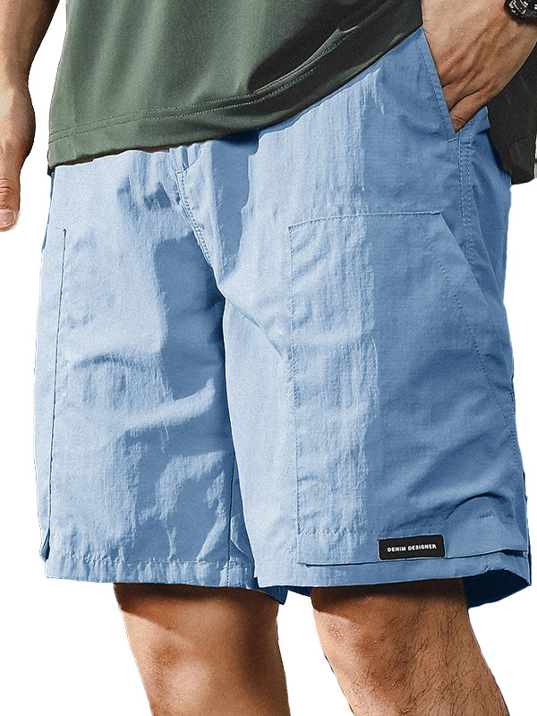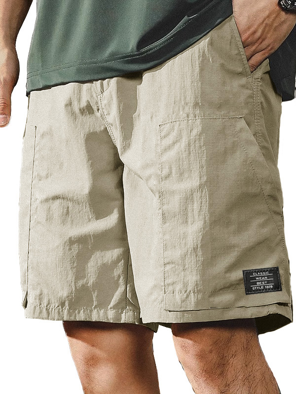 Men's Retro Outdoor Workwear Sports Quick-drying Embroidered Logo Elastic Waist Drawstring Pocket Shorts
