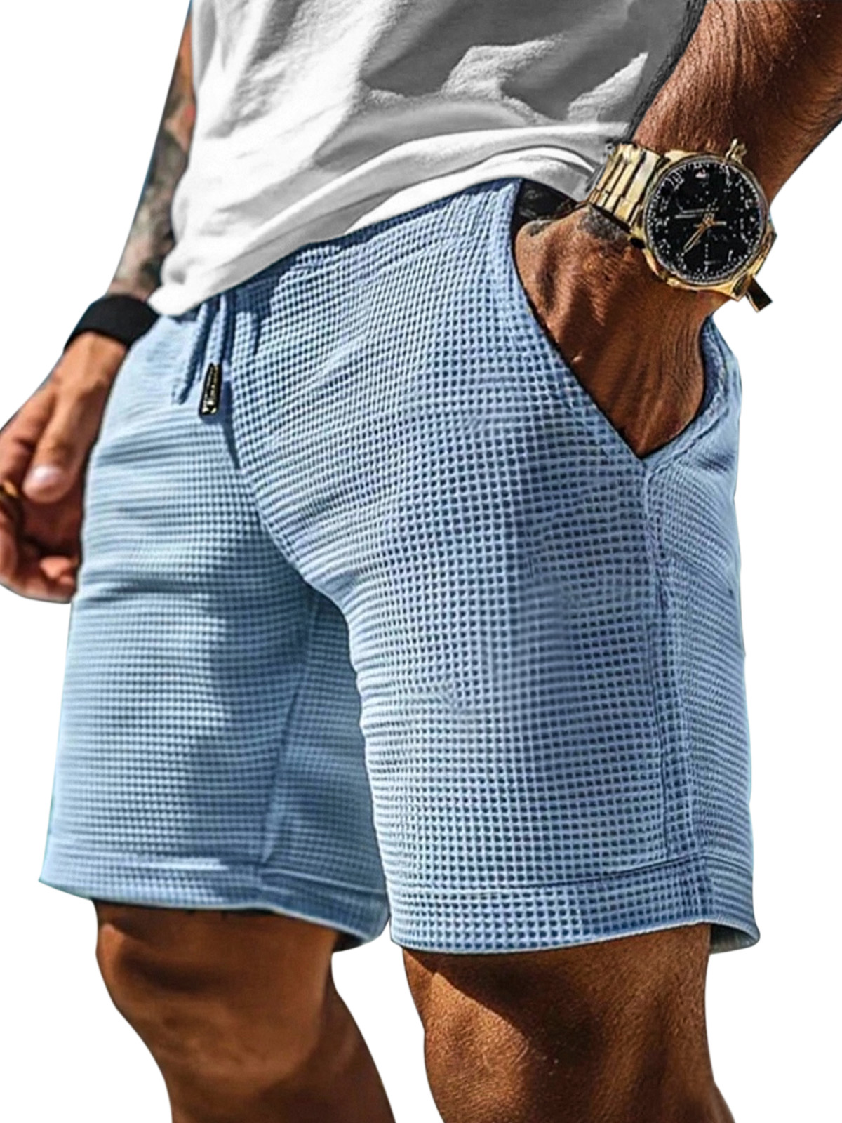 Men's Waffle Stylish Casual Lace-Up Everyday Shorts with Embroidered Label