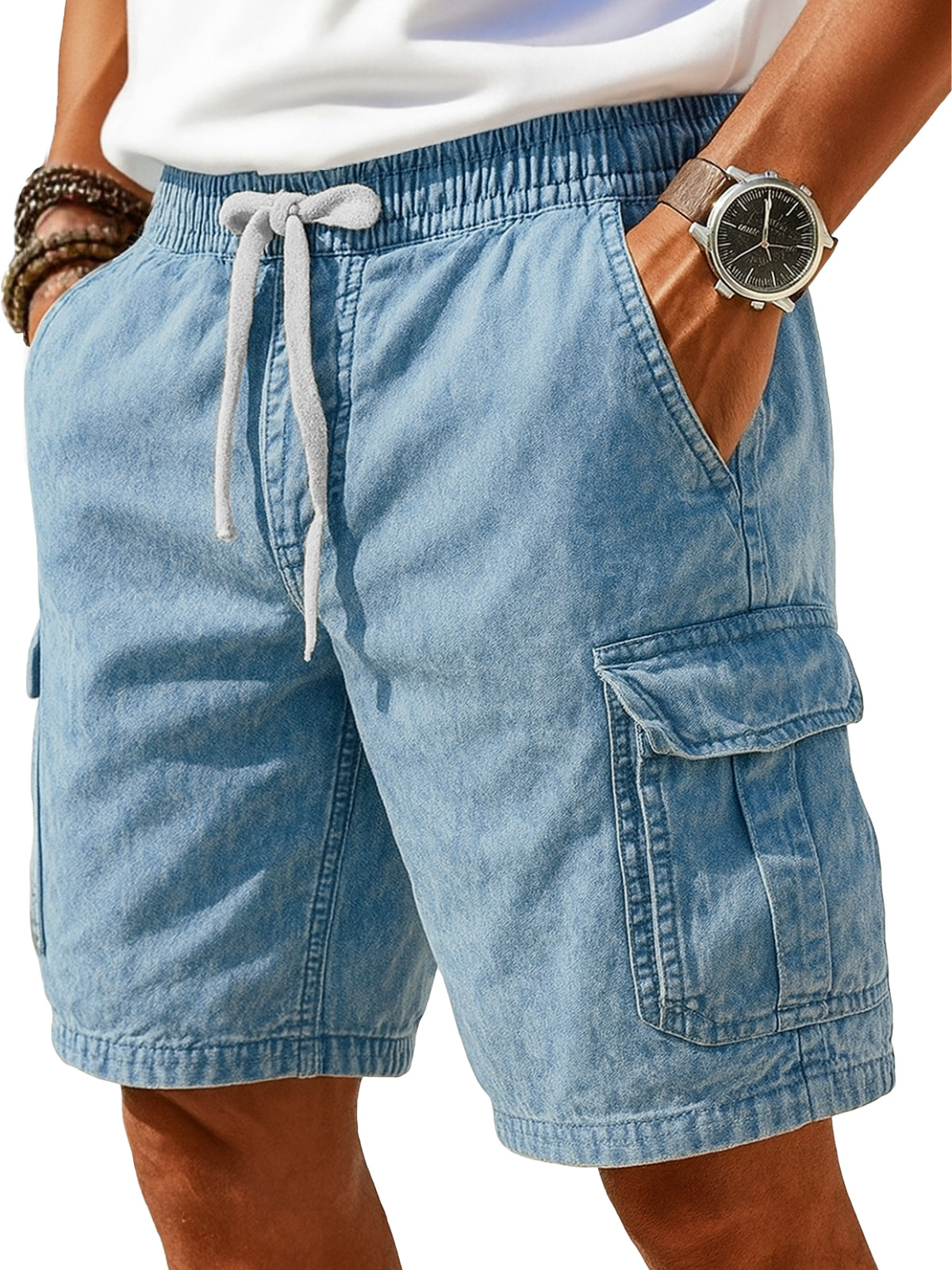 Men's Stylish Retro Cargo Shorts with Multiple Pockets and Lace-up Casual Shorts