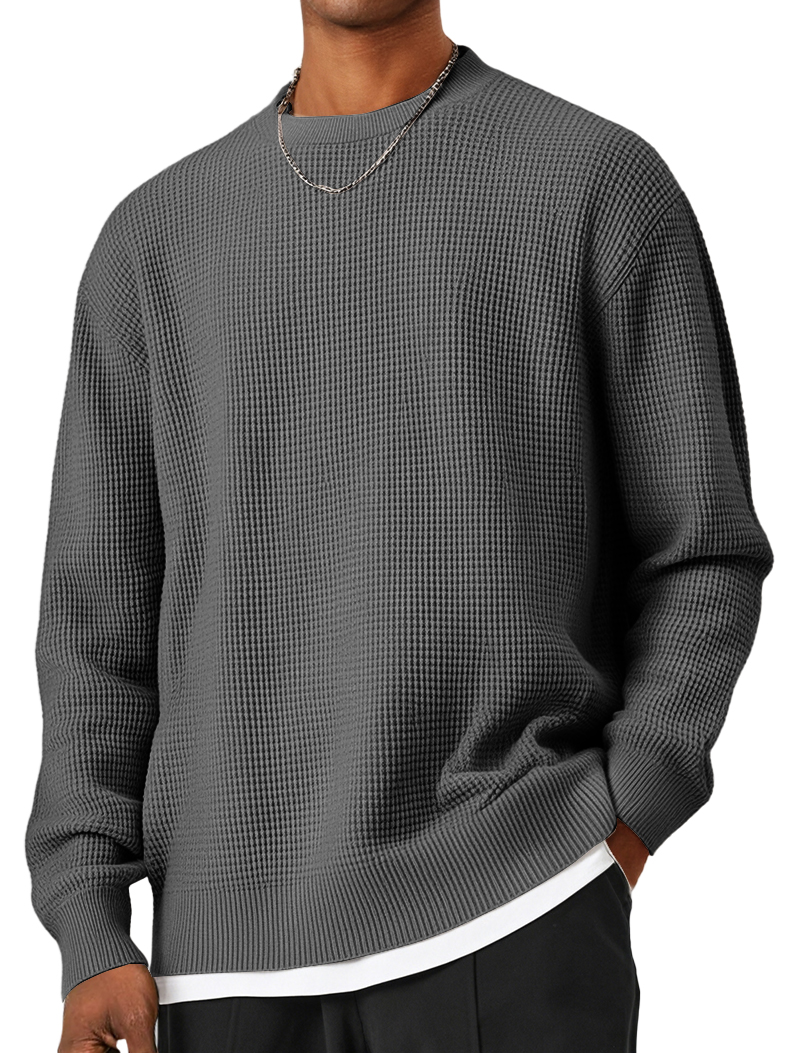Men's Round Neck Waffle Patterned Loose Fitting Knit Sweater