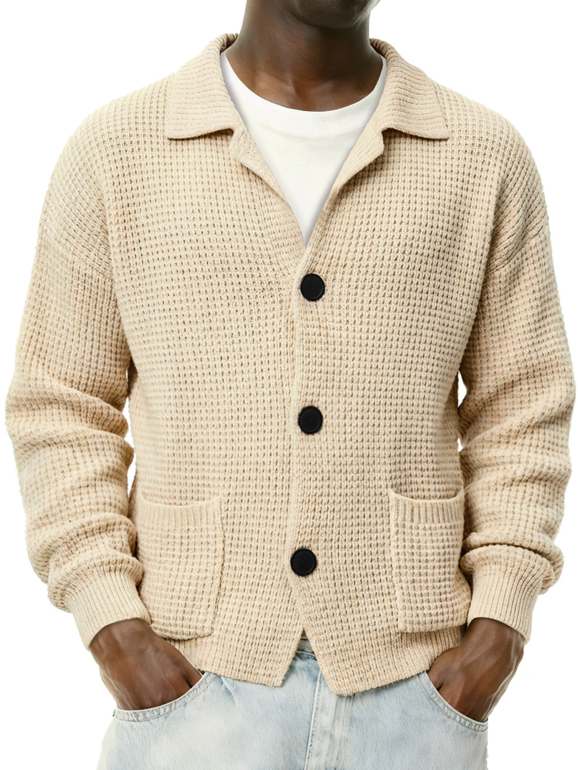 Men's Autumn Simple Waffle Neck Long Sleeve Sweater