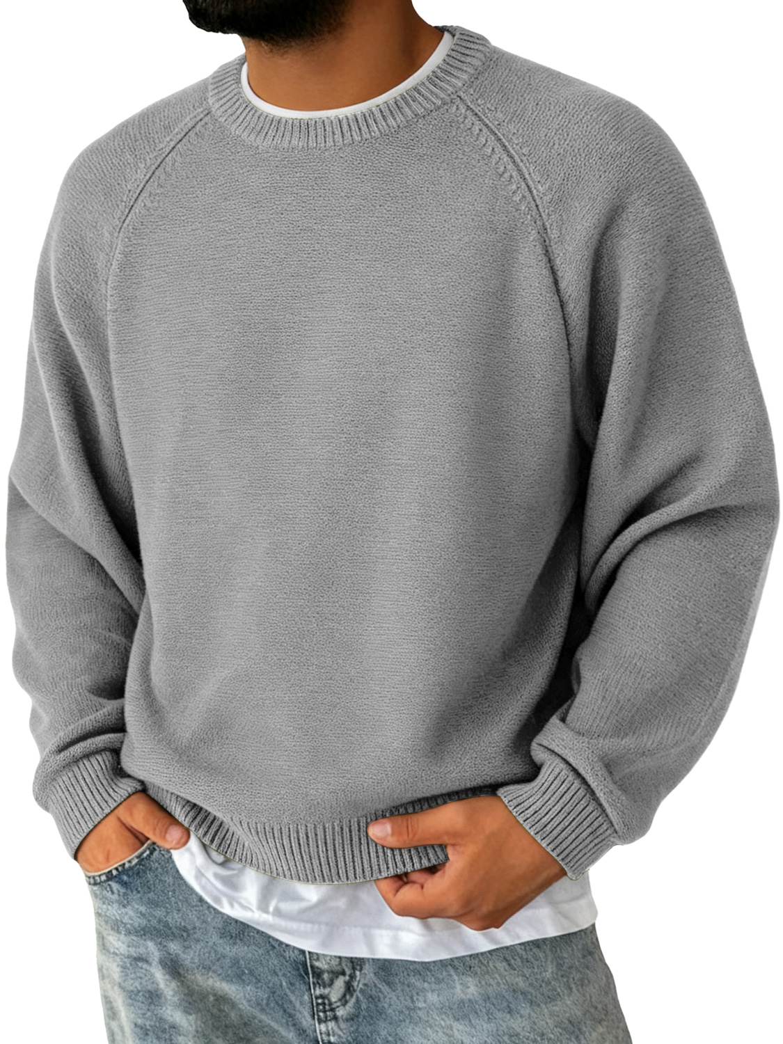 Men's Simple Round Neck Raglan Sleeve Casual Comfortable Sweater