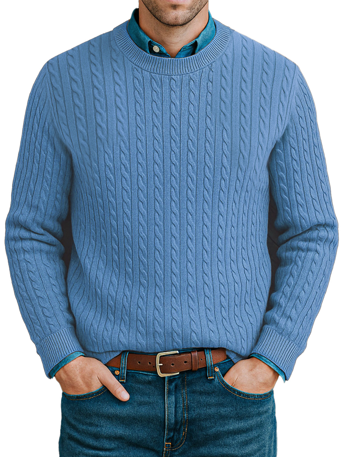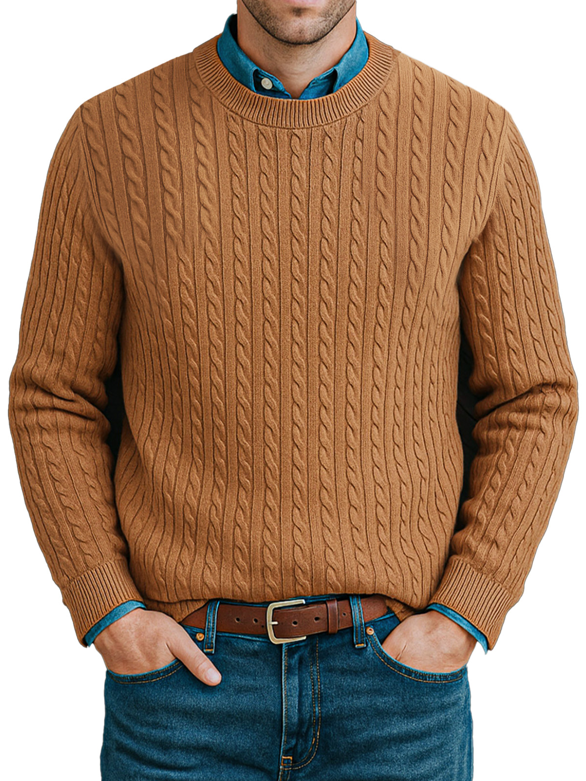 Men's Casual Twist Knitted Versatile Crew Neck Sweater