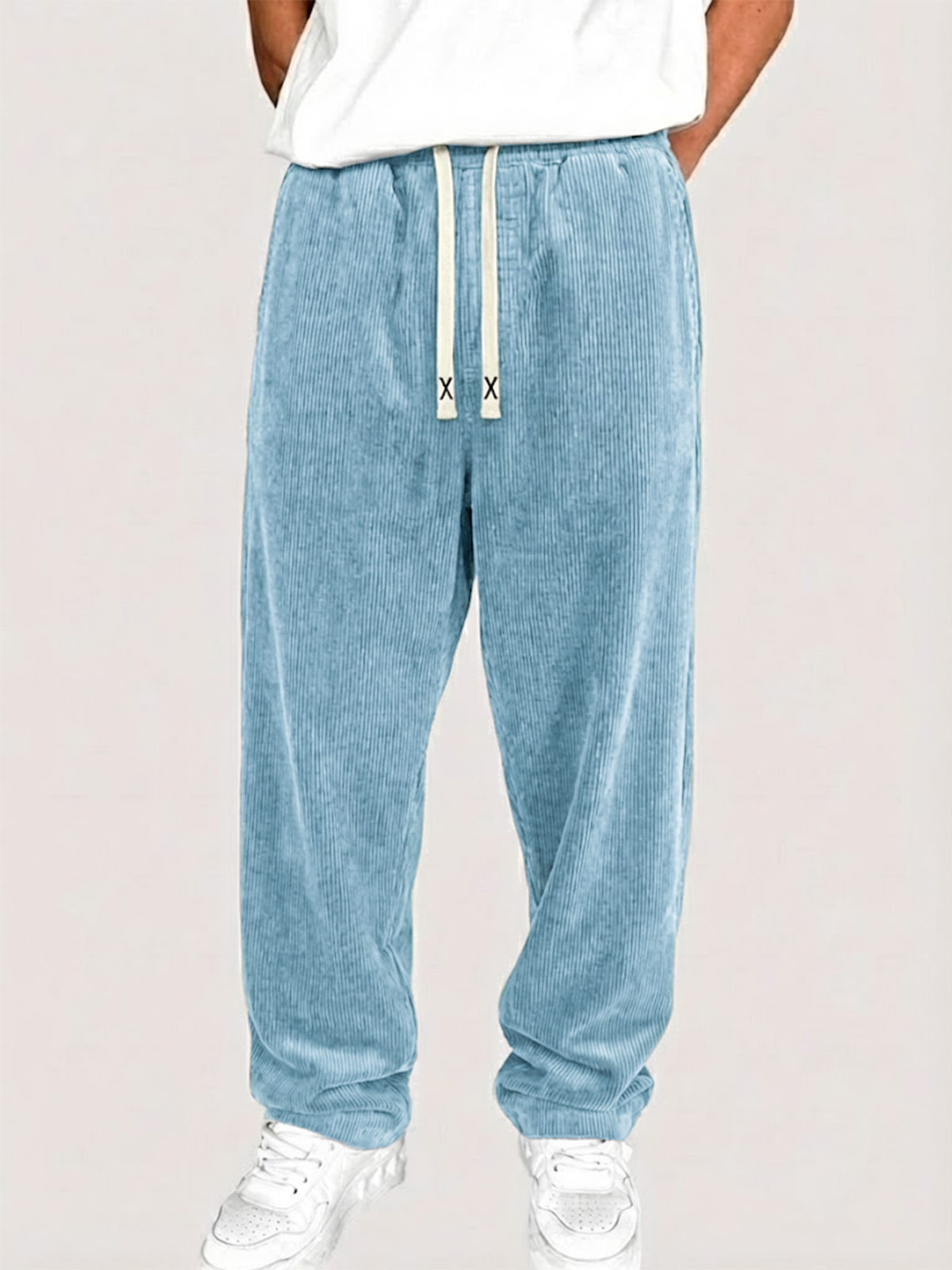 Men's Corduroy Solid Color Casual Loose-fitting Trousers