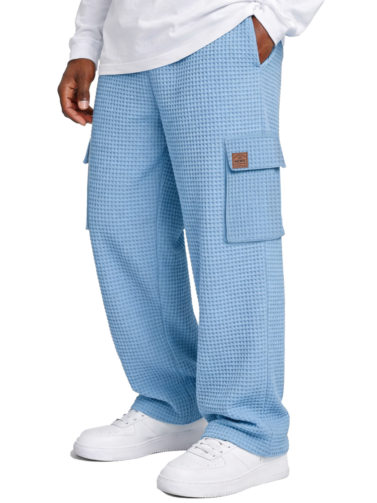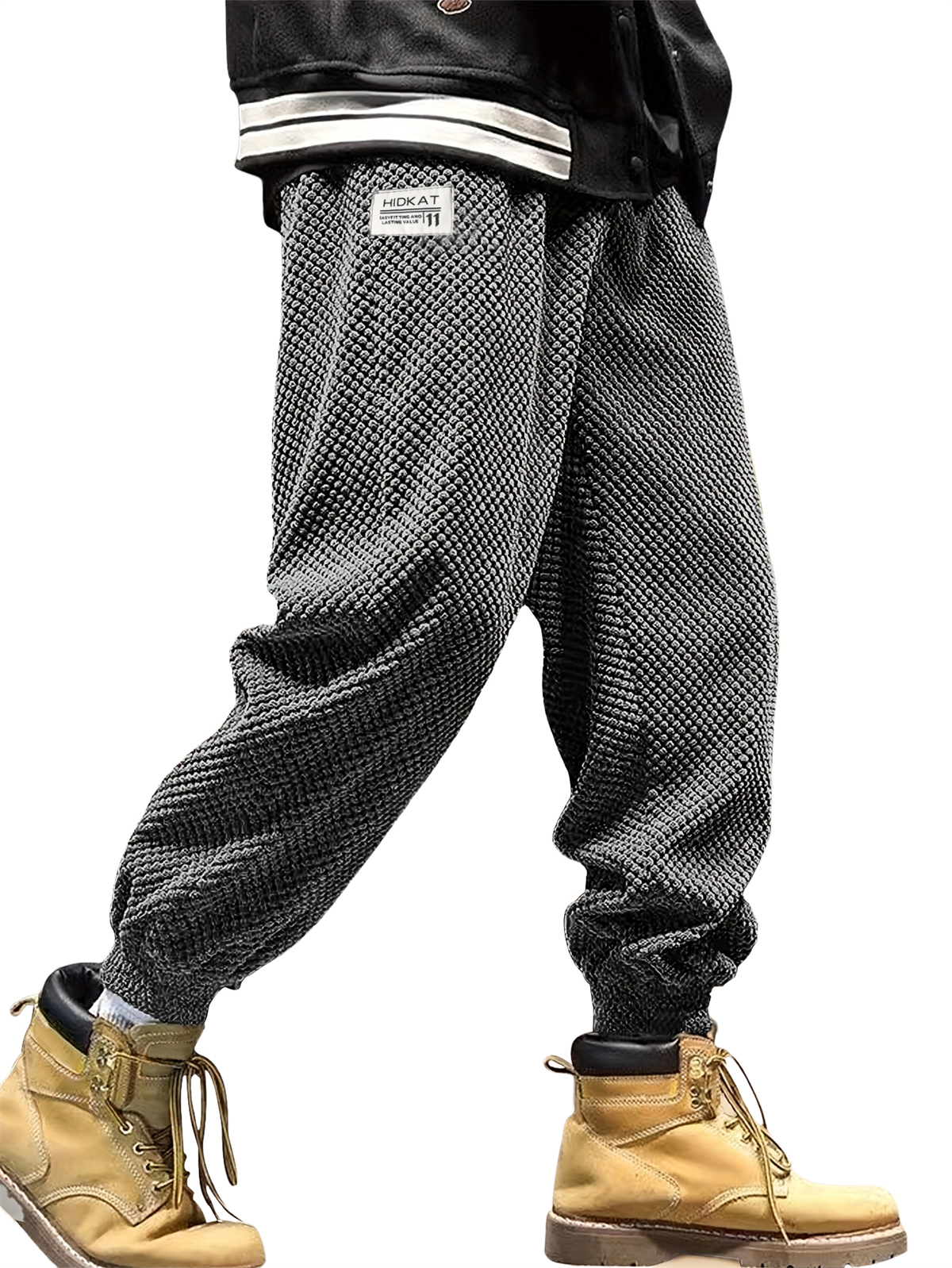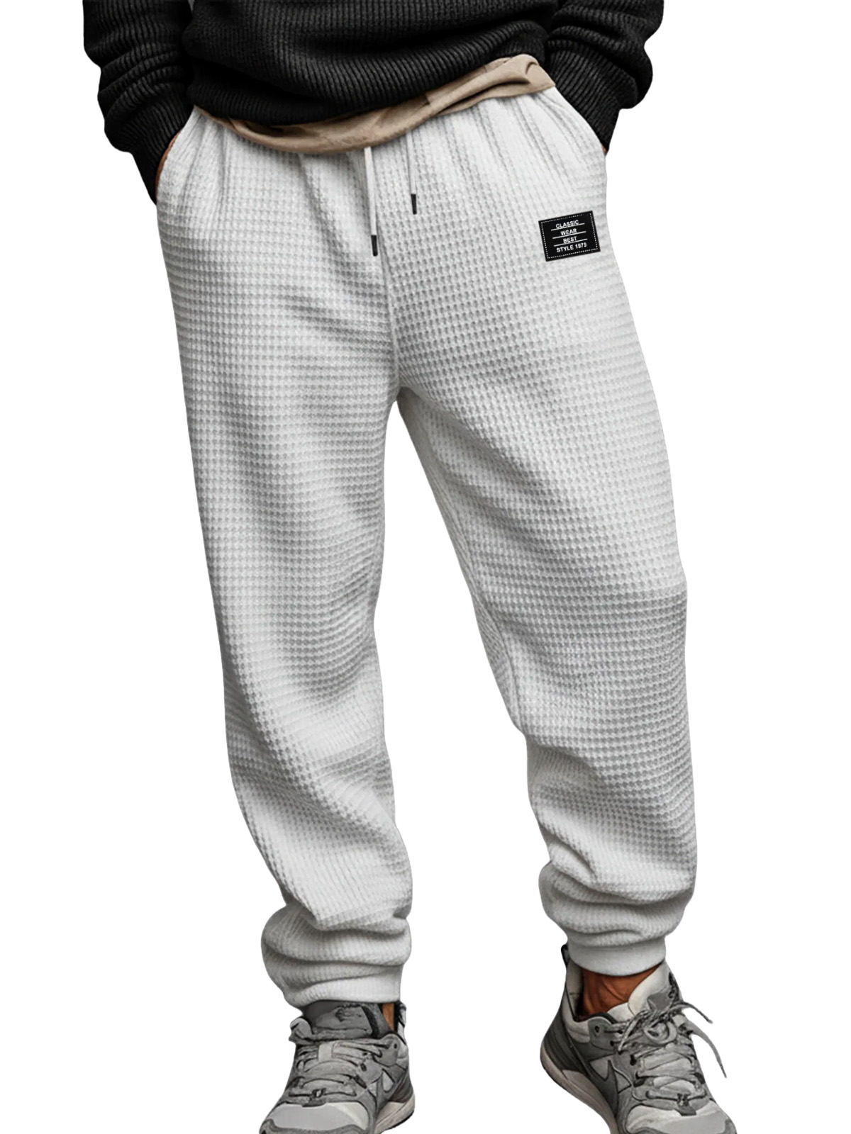 Men's Casual Retro Waffle Fabric Logo Trousers