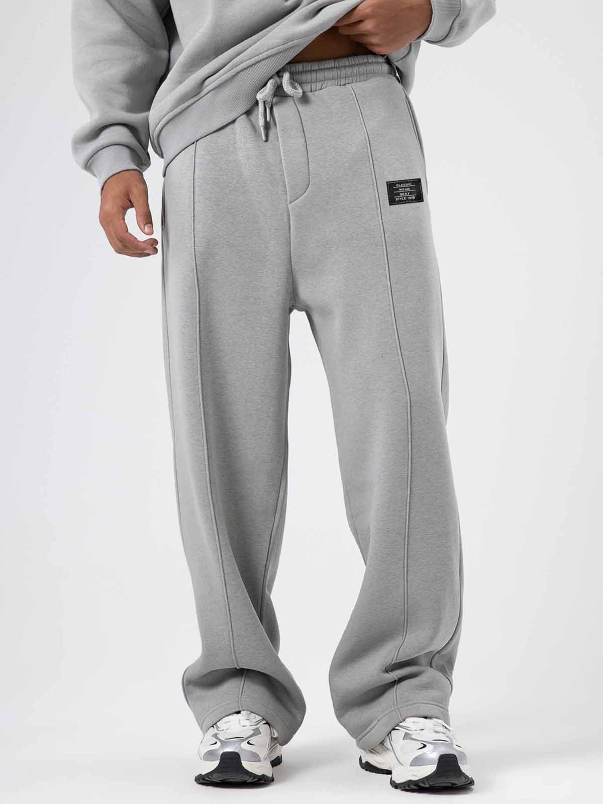 Simple Solid Color Loose And Comfortable Panel Design Straight-leg Pants With Logo