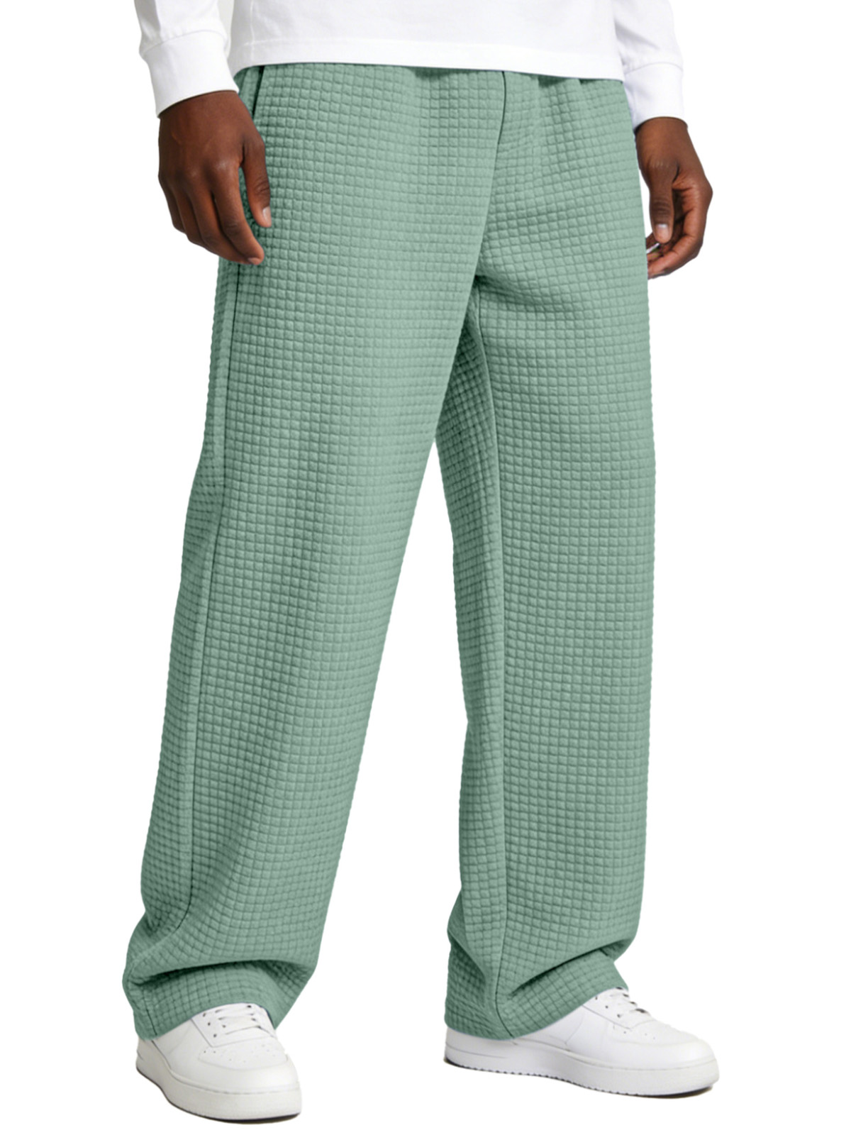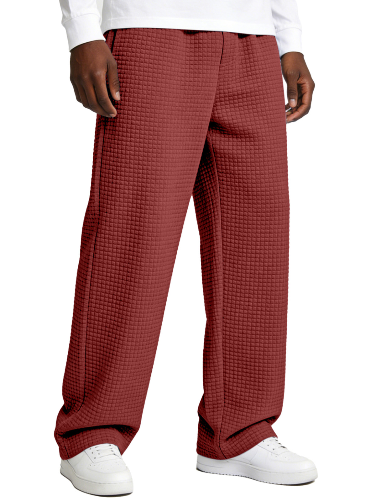 Men's Simple Waffle-knit Casual Loose-fitting Trousers With Embroidered Logo