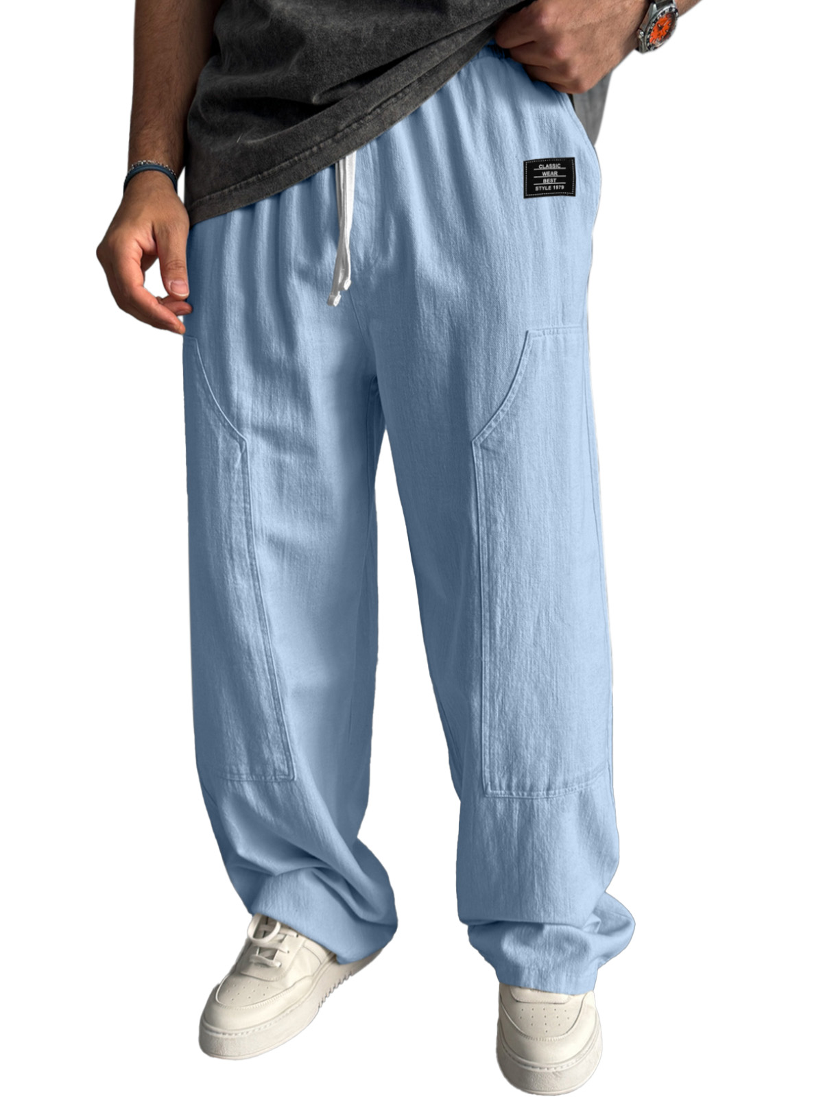 Men's Vintage Breathable Linen Multi-pocket Casual Embroidered Label Trousers