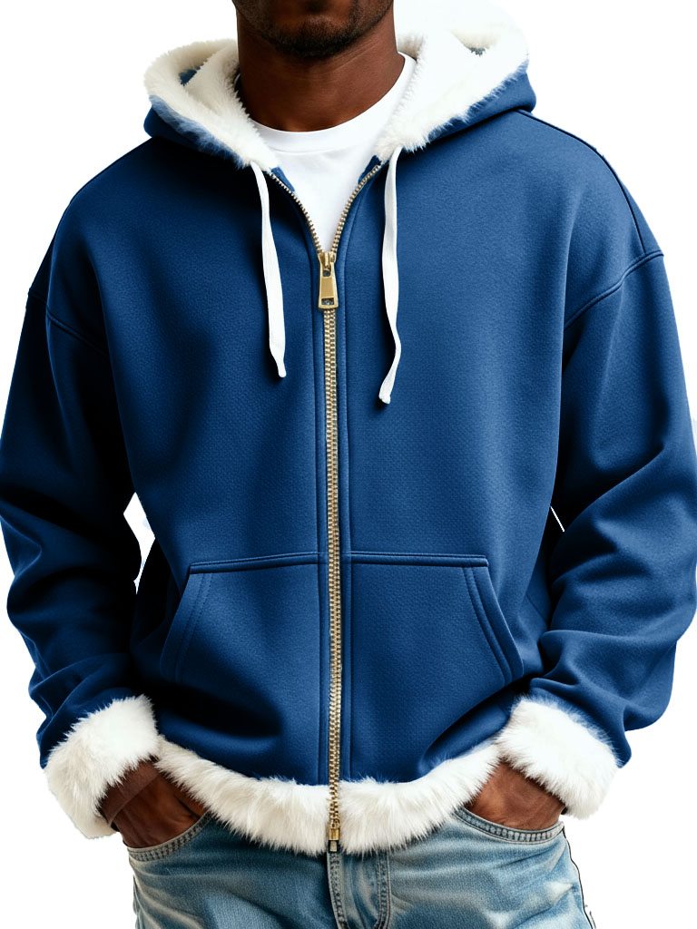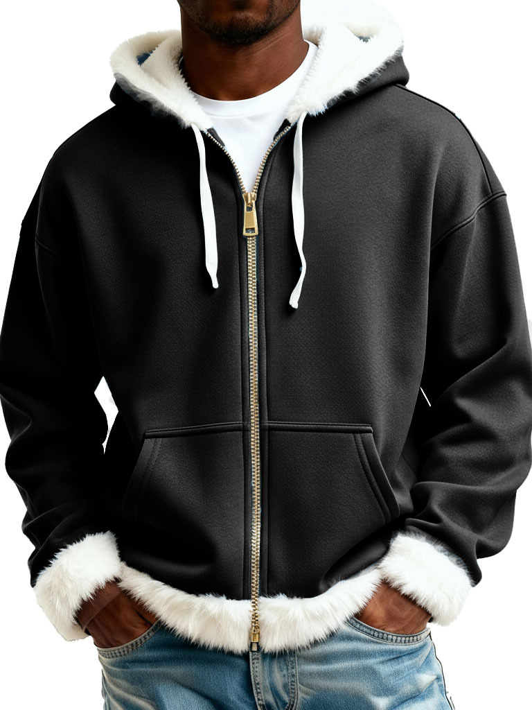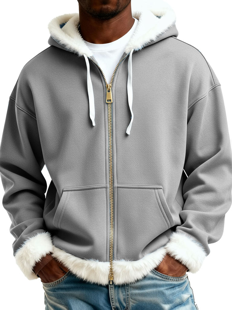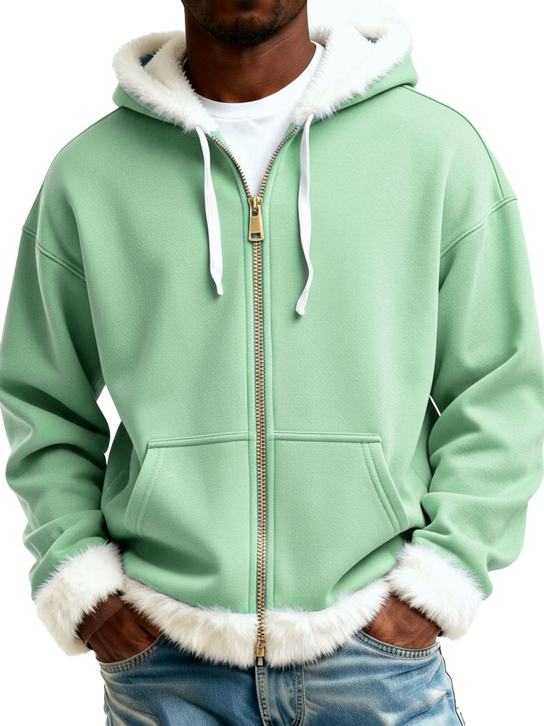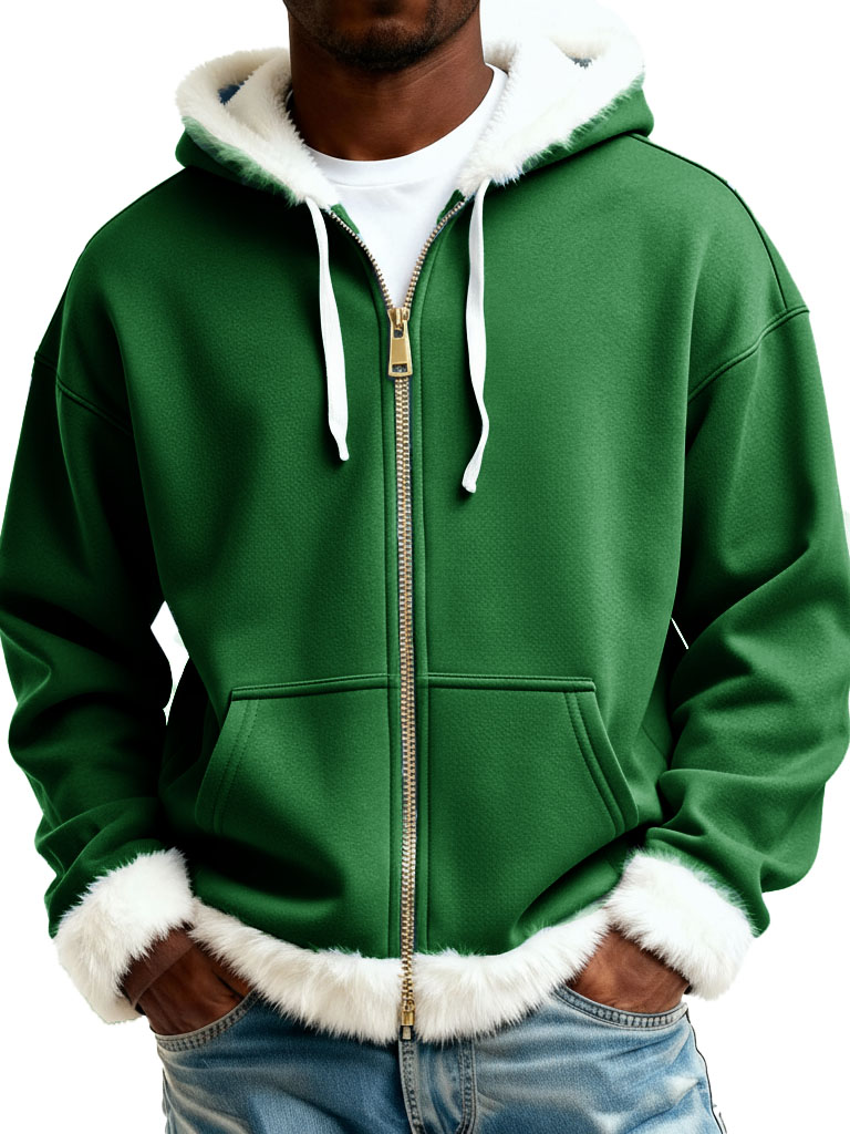 Christmas Fashionable Casual Plush Zipper Long-Sleeve Hooded Jacket