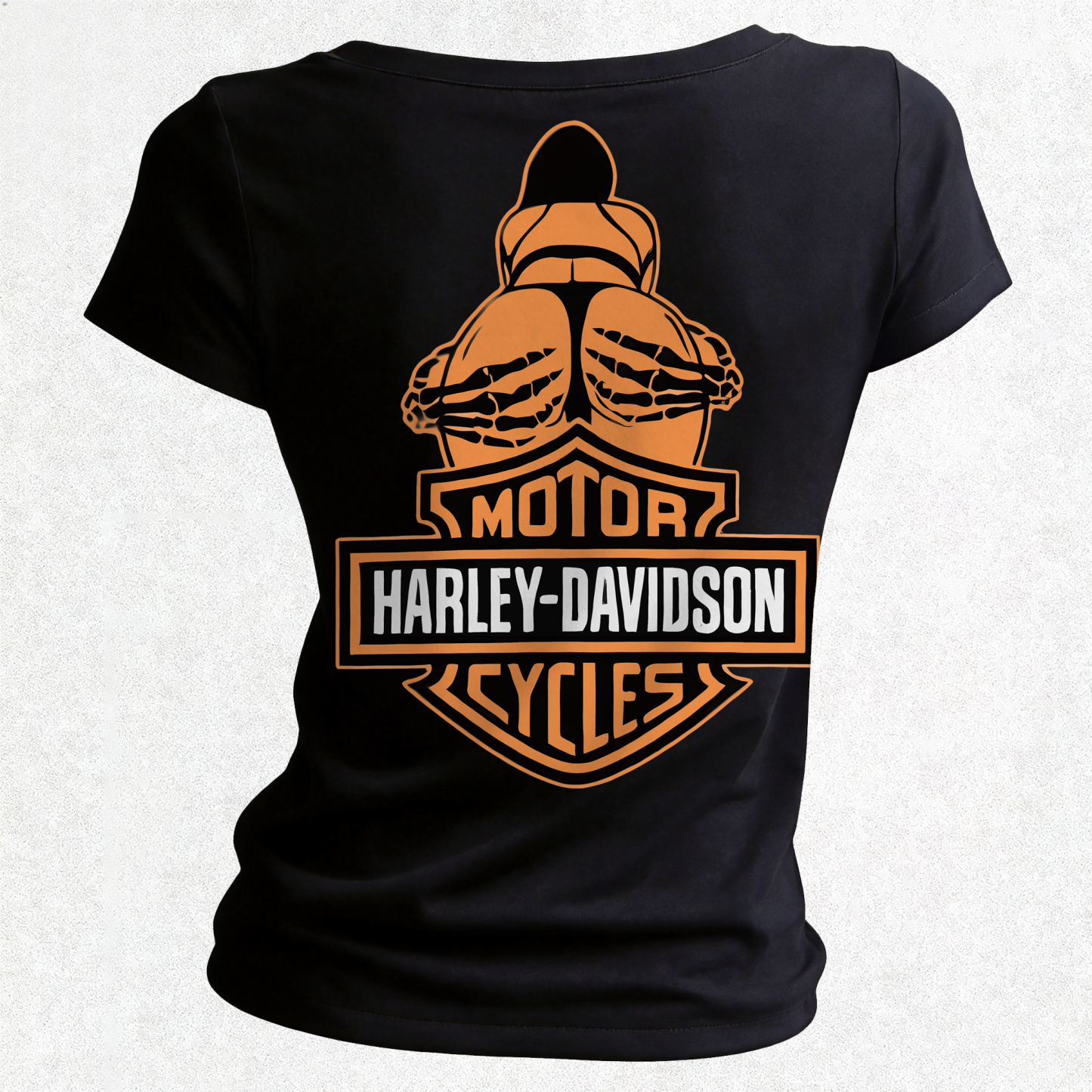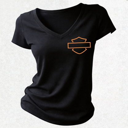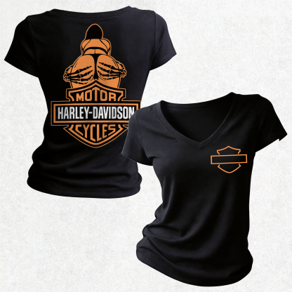 Motorcycles Printed Women's V-neck Pleated Waist Fitted T-shirt