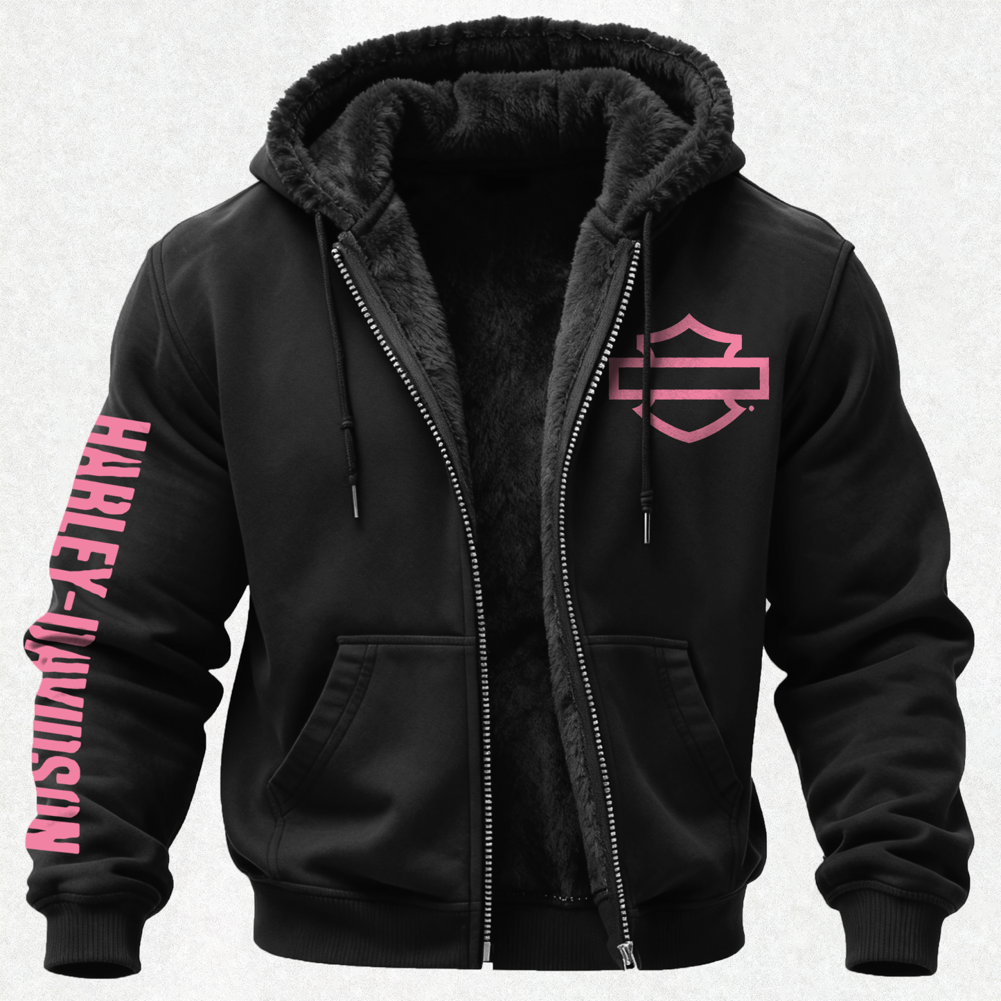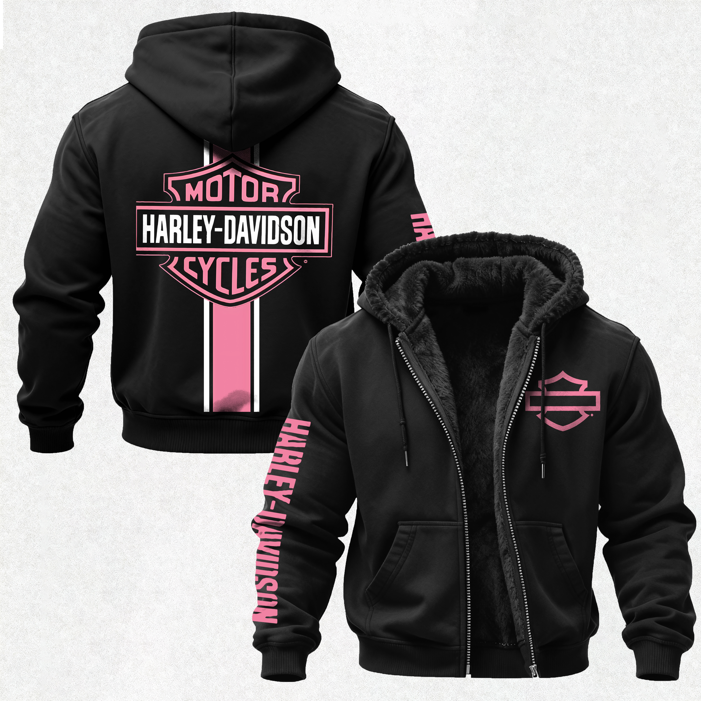 Motorcycles Printed Zippered Hooded Fleece Cardigan