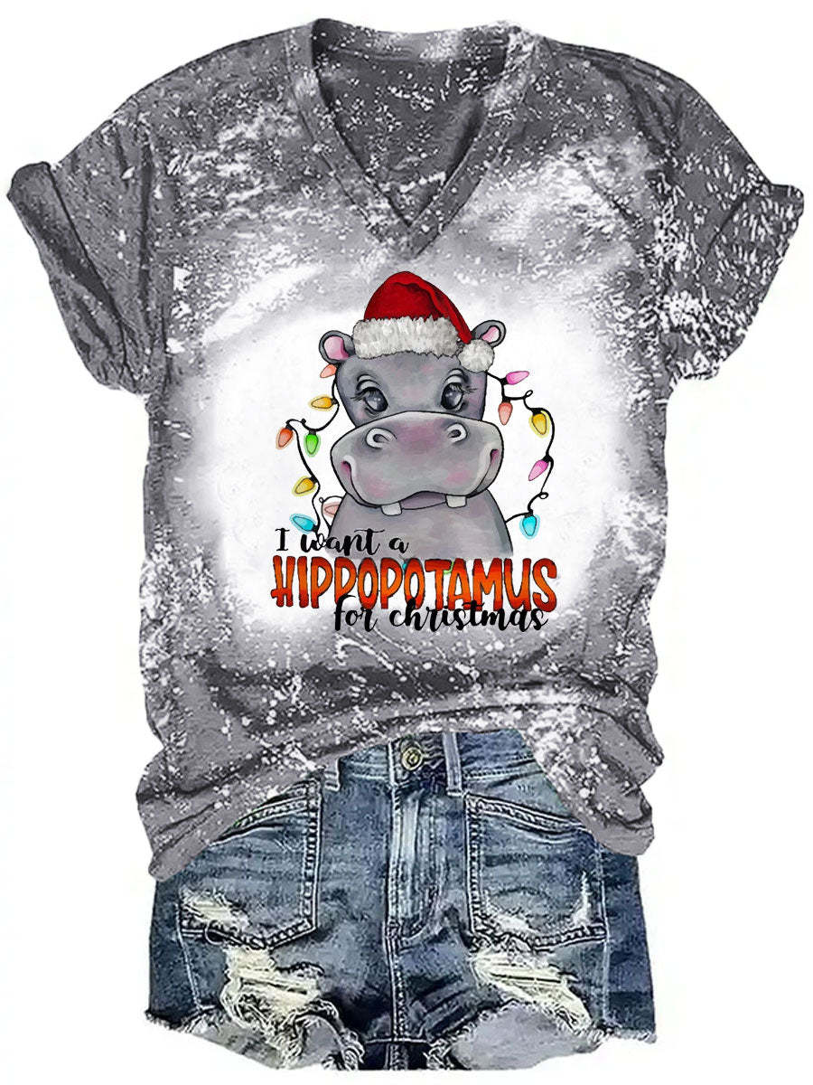 I Want A Hippopotamus For Christmas Tie Dye V-neck T-shirt