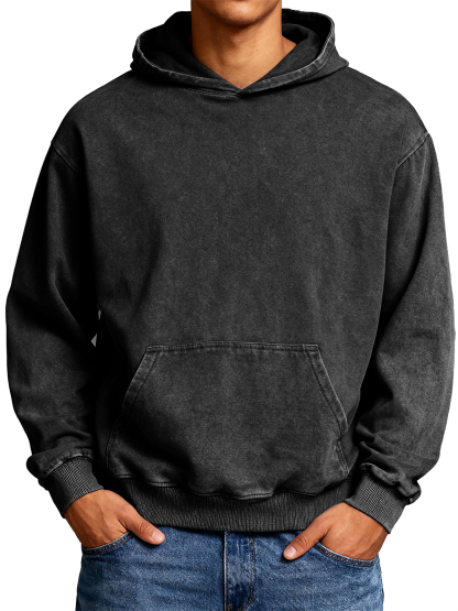 Men's 100% Cotton Washed Distressed Vintage Casual Hooded Sweatshirt