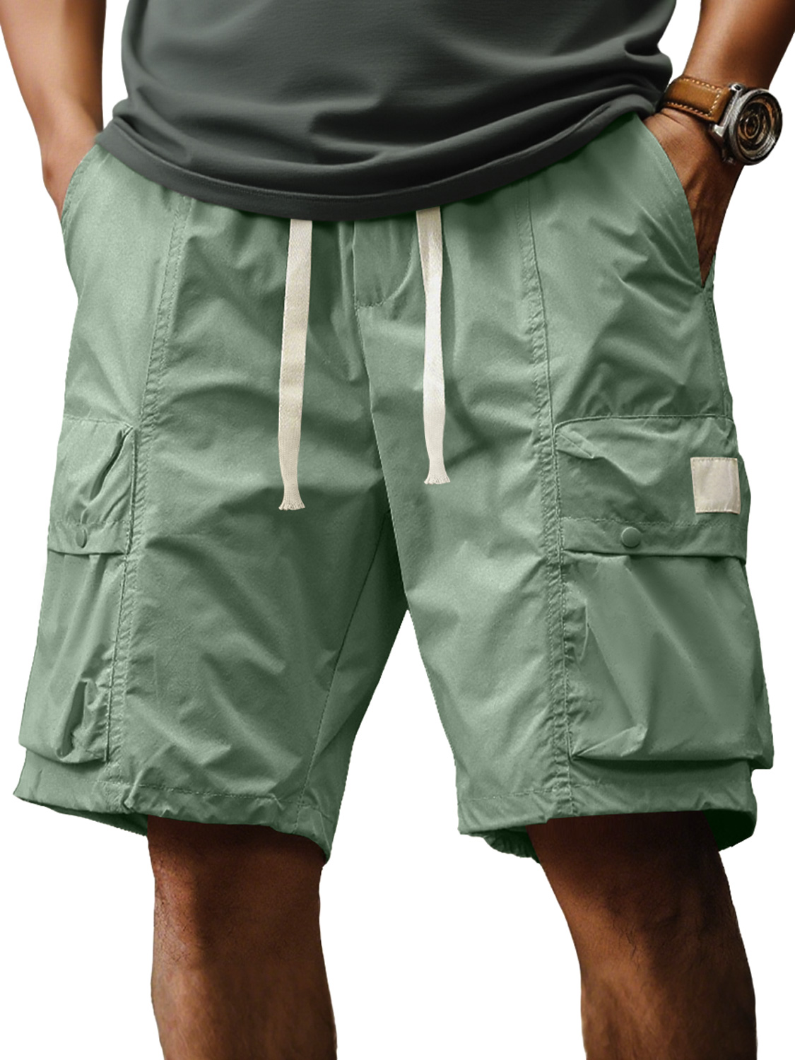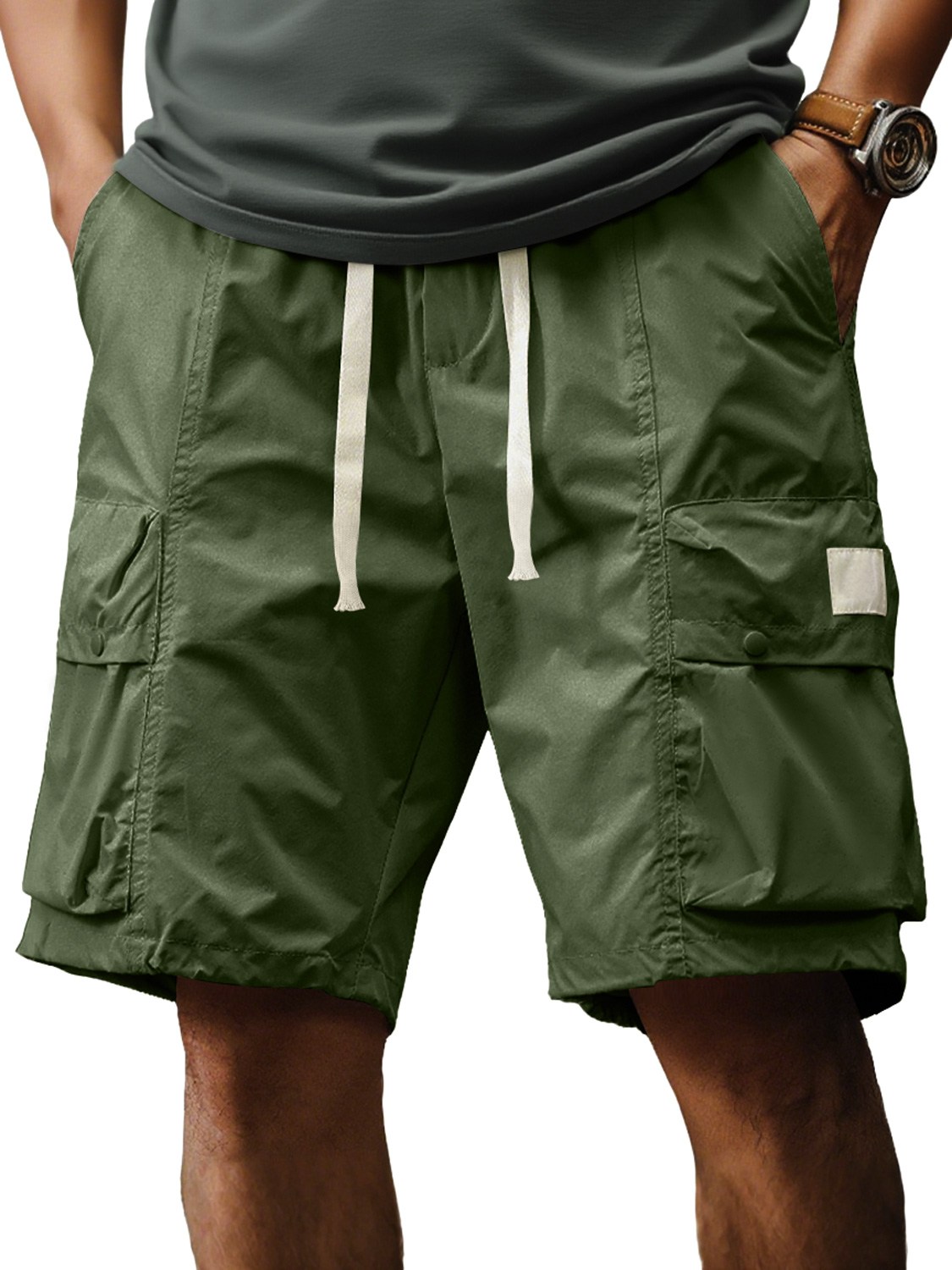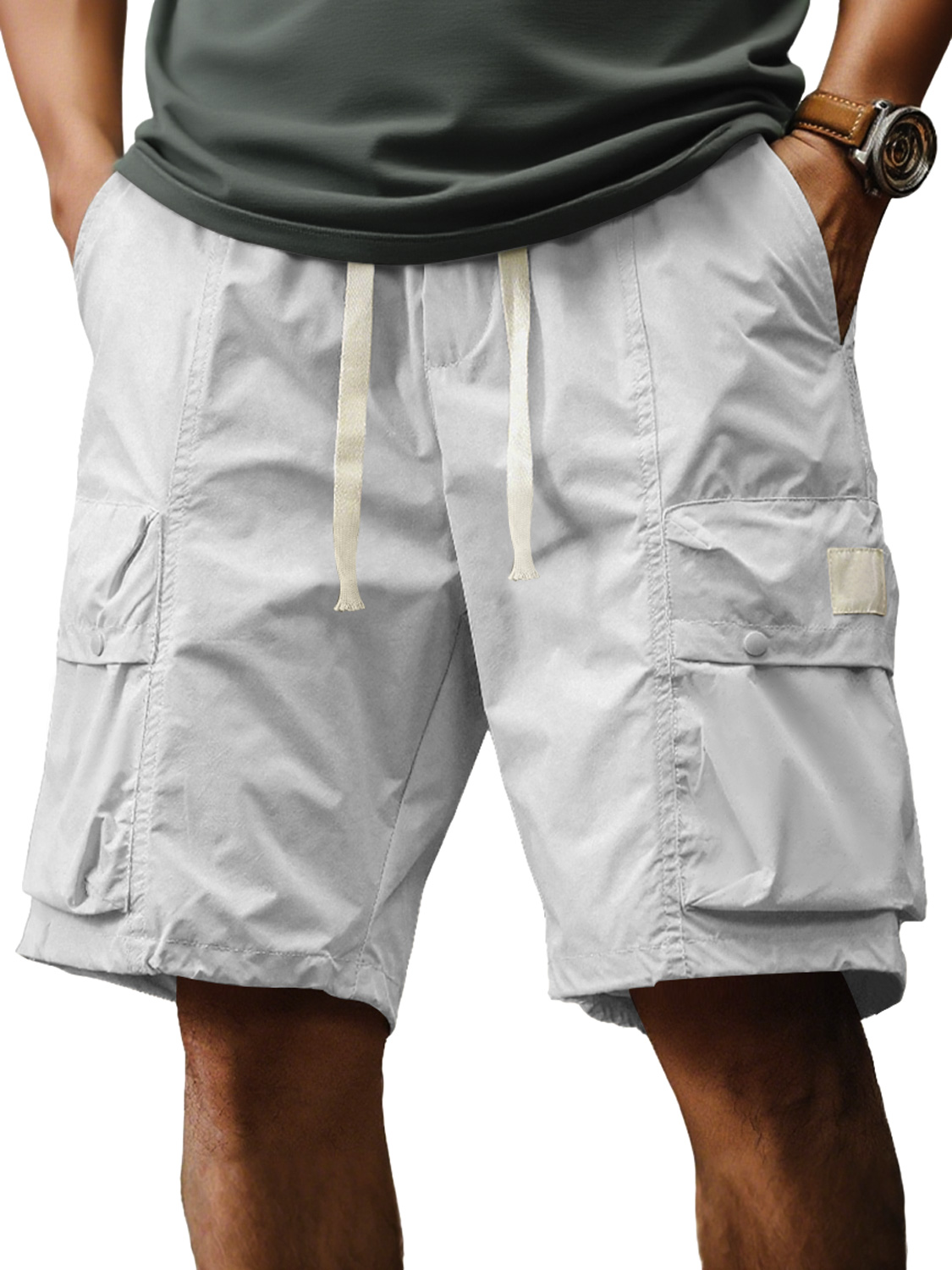 Men's Casual Loose Multi-Pocket Elastic Waist Solid Color Work Shorts