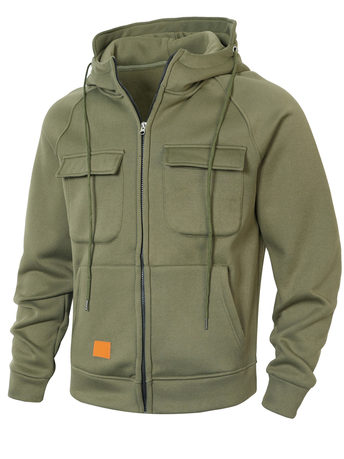 Men's Casual Solid Color Multi-pocket Hooded Cardigan Zipper Jacket