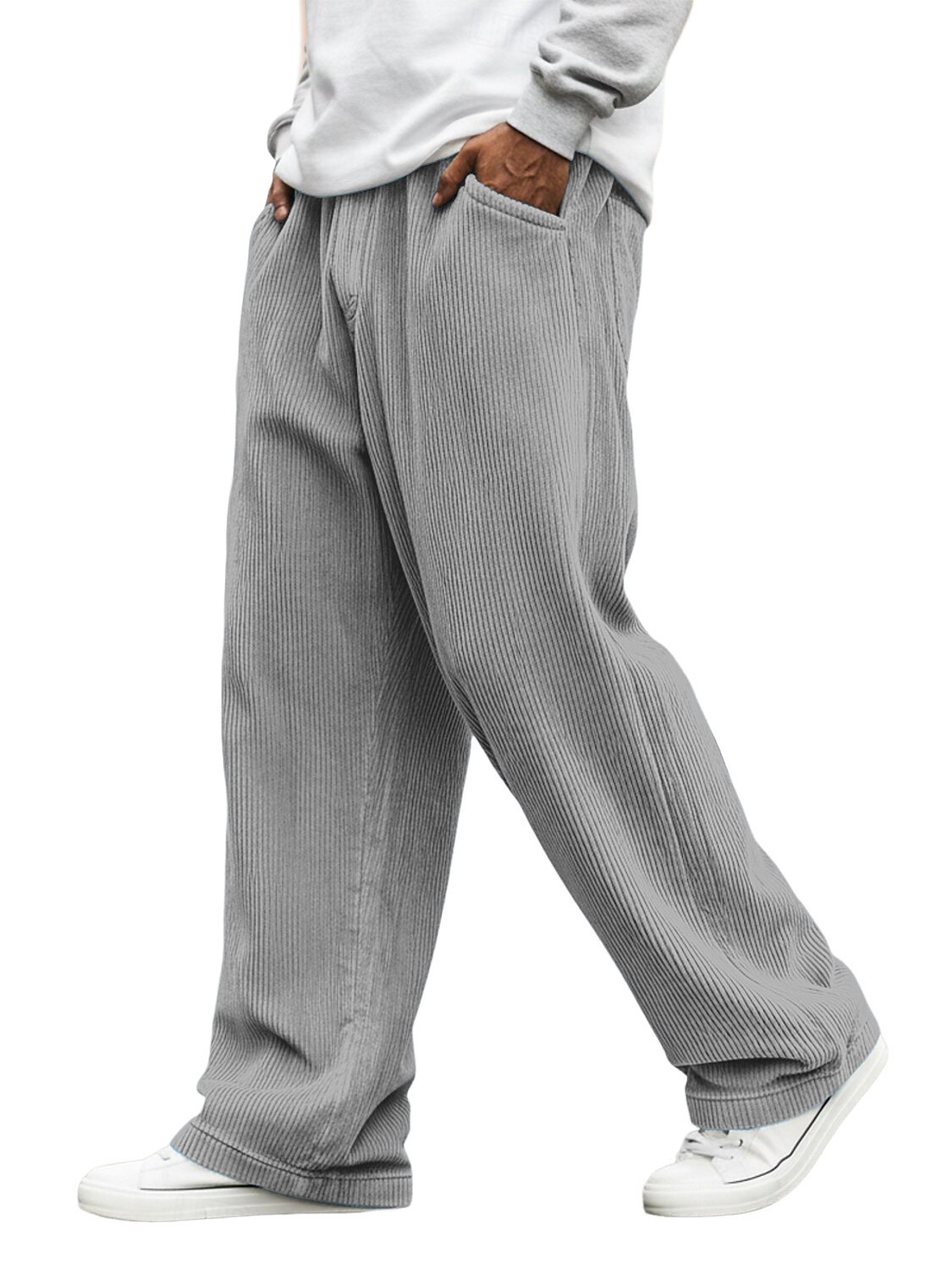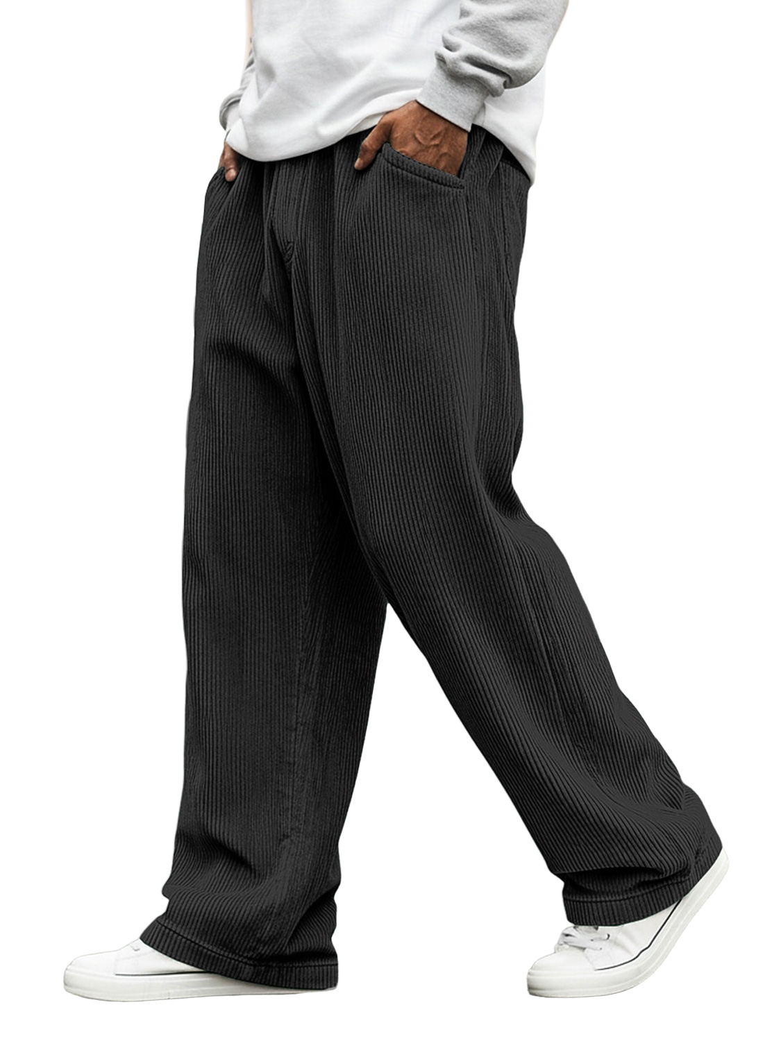 Men's Corduroy Solid Color Casual Loose-fitting Trousers