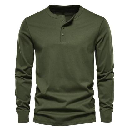 Men's Cotton Solid Color Basic Stretch Henley Long Sleeve Top