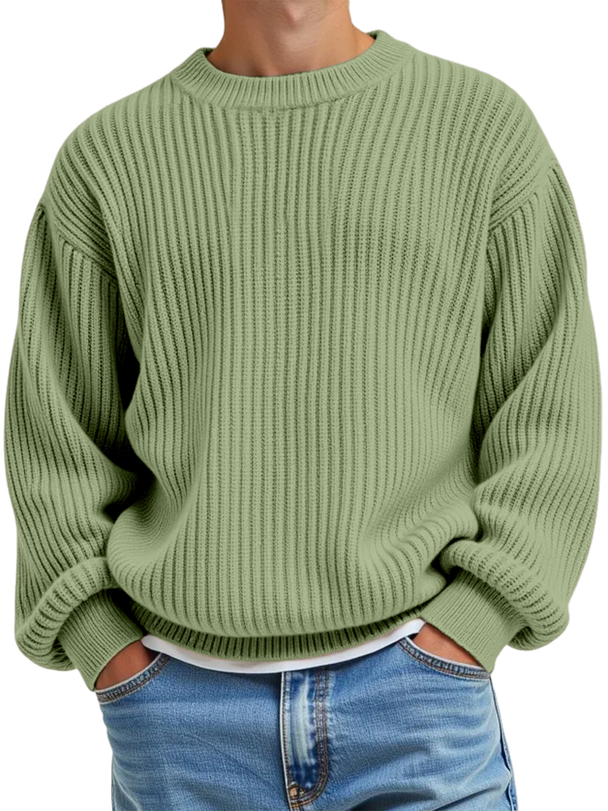 Men's Daily Casual Solid Color Knitted Crew Neck Sweater