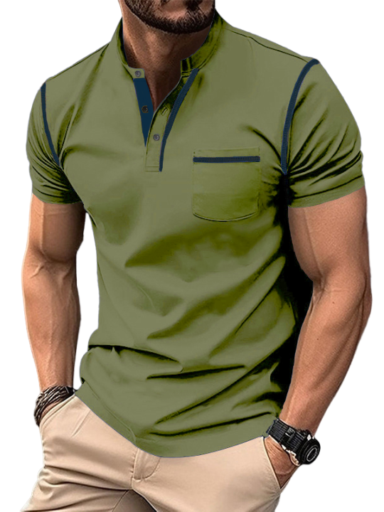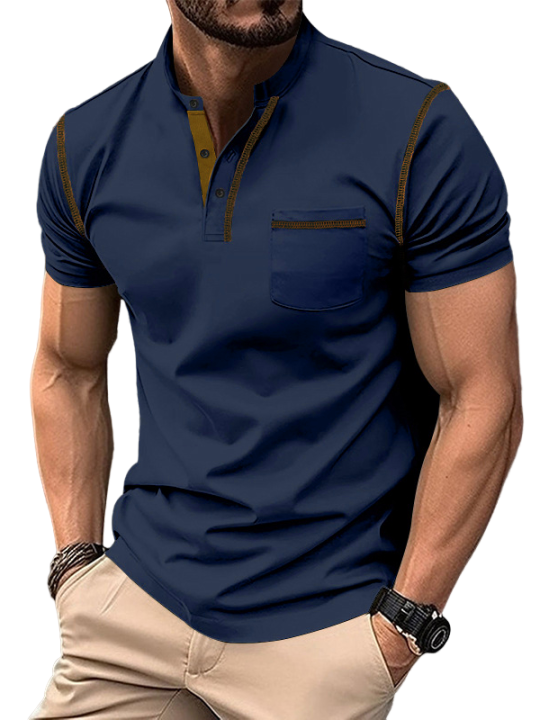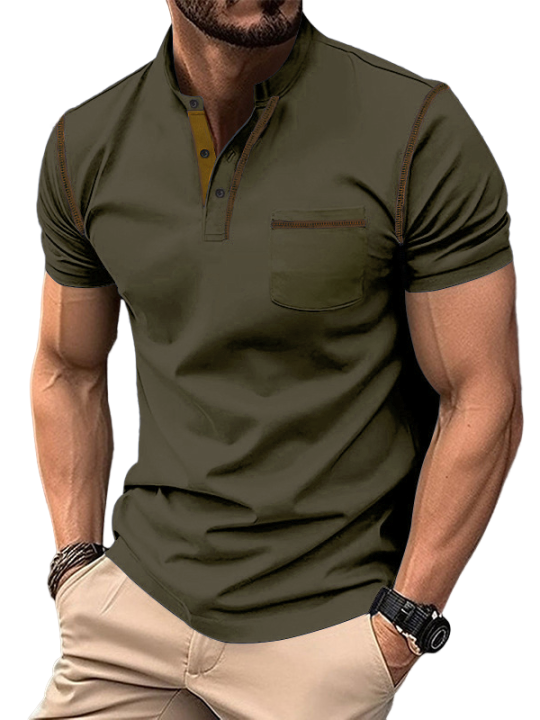 Men's Fashion Cotton Short Sleeve Henley Shirts