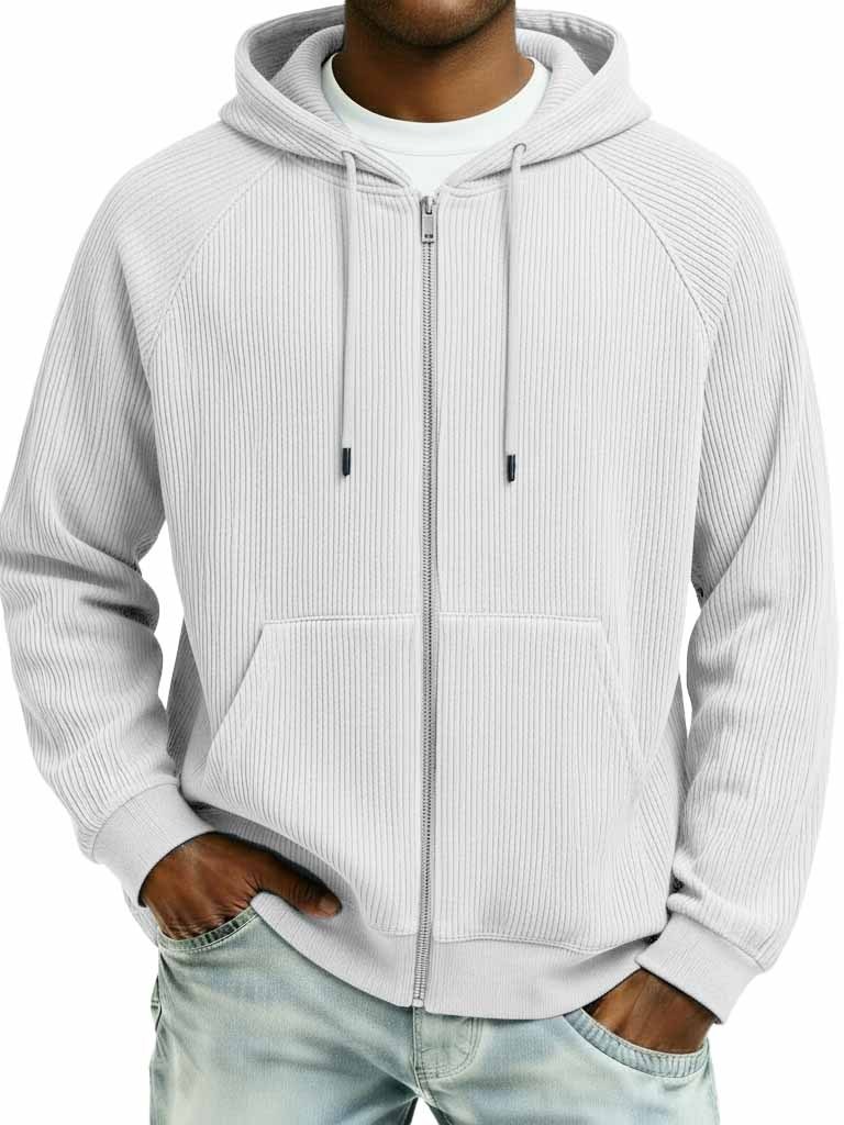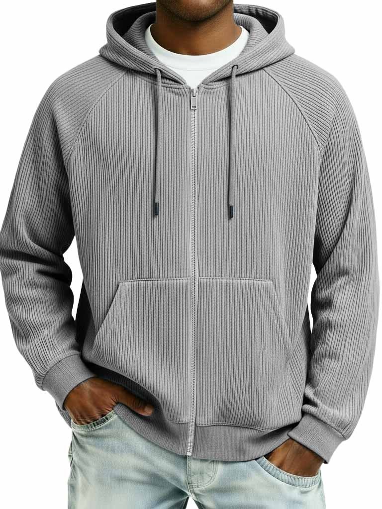 Men's Fashion Sporty Ribbed Fabric Raglan Sleeve Pocket Cardigan Jacket