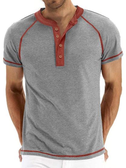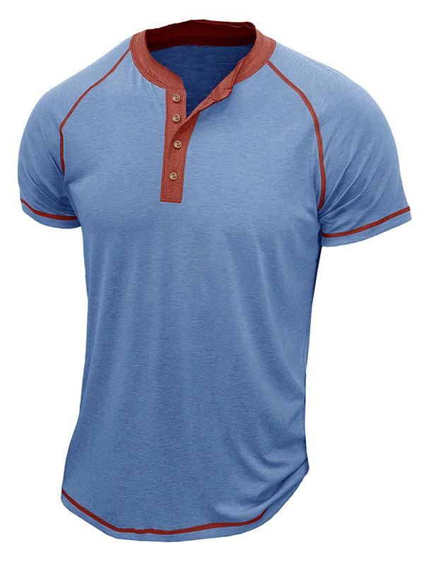 Men's Line Short Sleeve Patchwork Henley Shirt