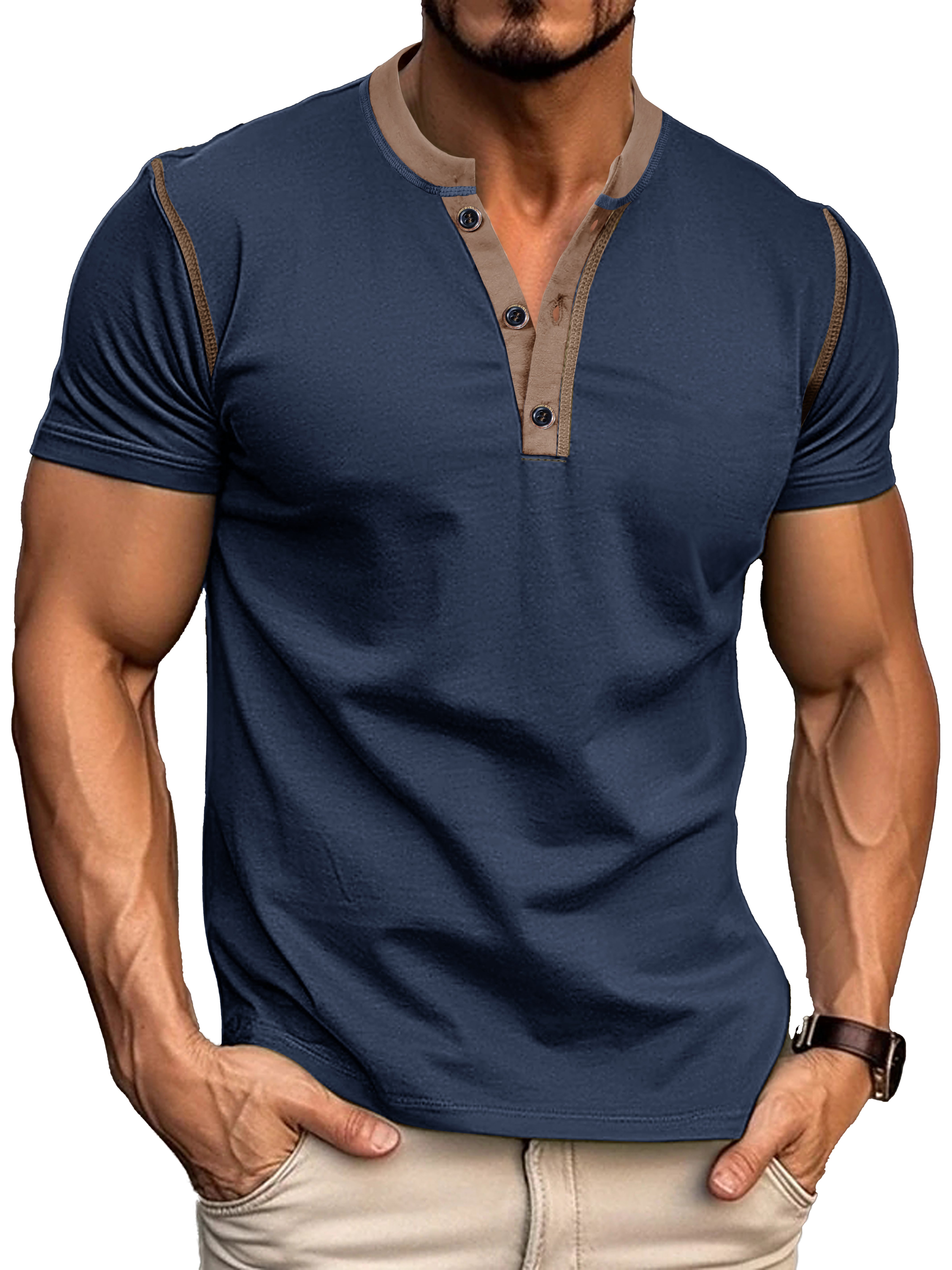 Men's Patchwork Button-down Short-sleeved Henley Shirt