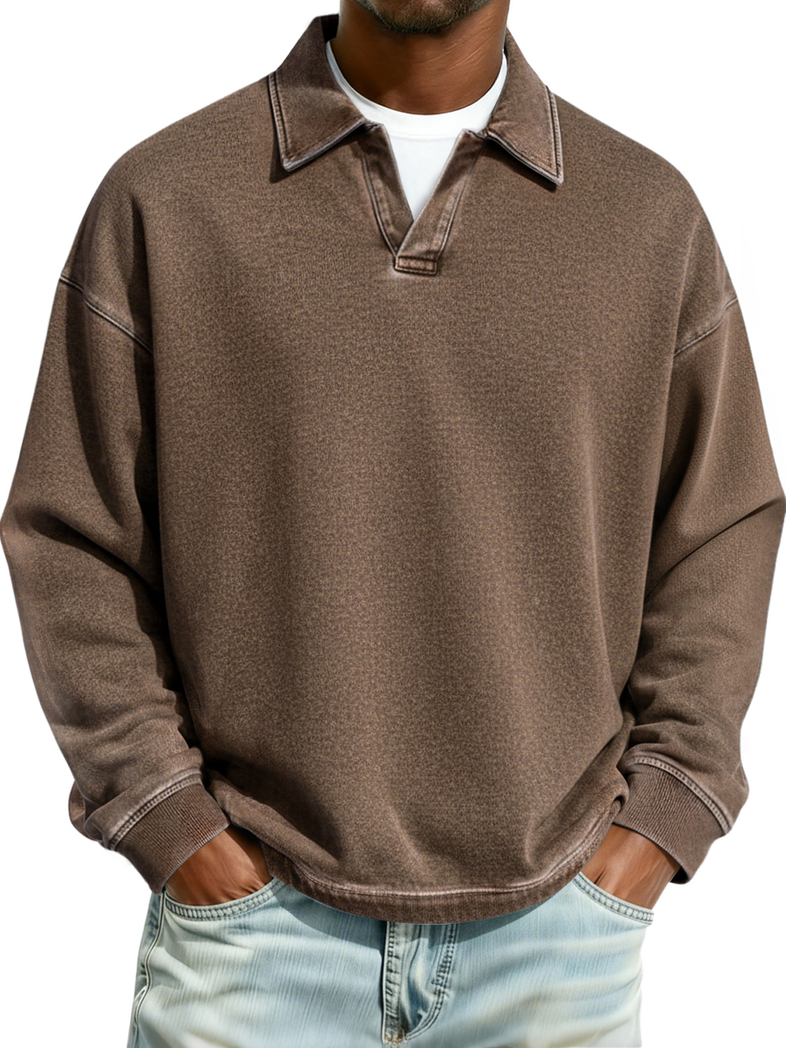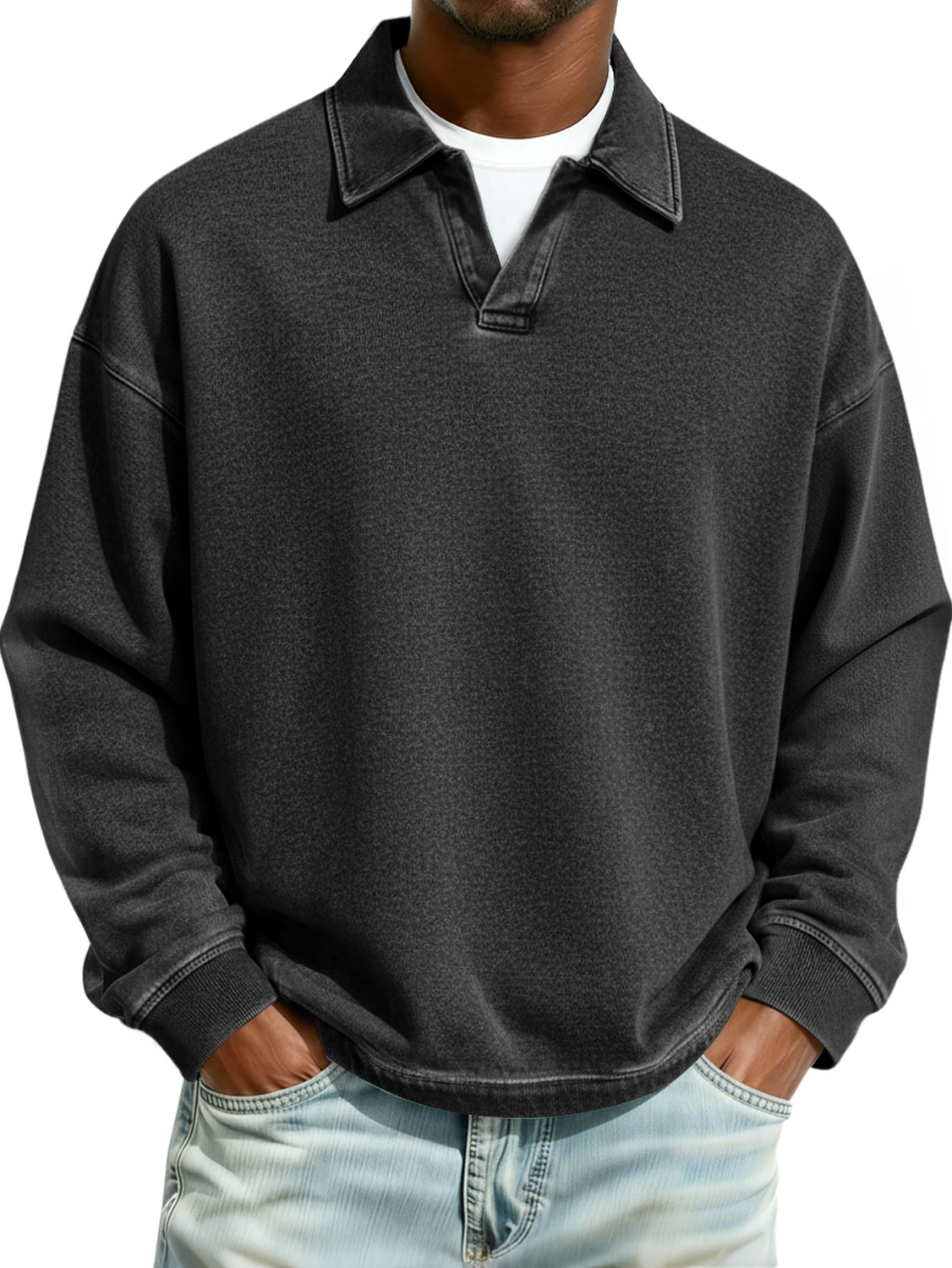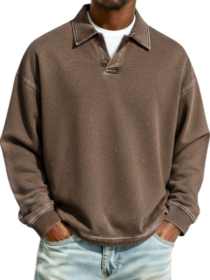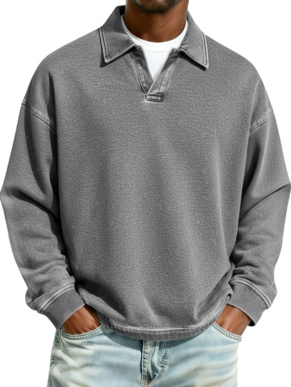 Men's Retro Collared Casual Comfort Long-Sleeve Polo Shirt
