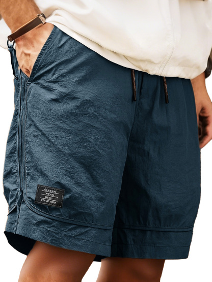 Men's Retro Outdoor Workwear Sports Quick-drying Embroidered Logo Elastic Waist Drawstring Pocket Shorts