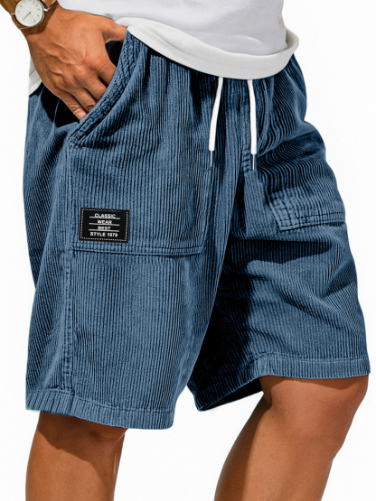 Men's Retro Solid Color Design Sense Logo Casual Shorts