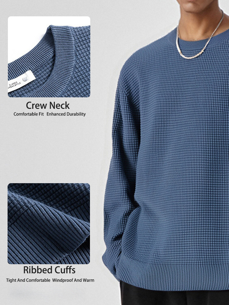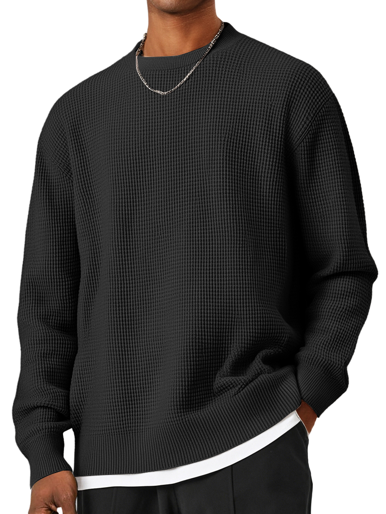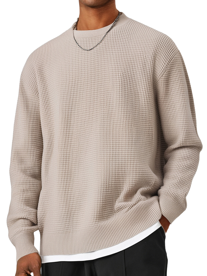 Men's Round Neck Waffle Patterned Loose Fitting Knit Sweater