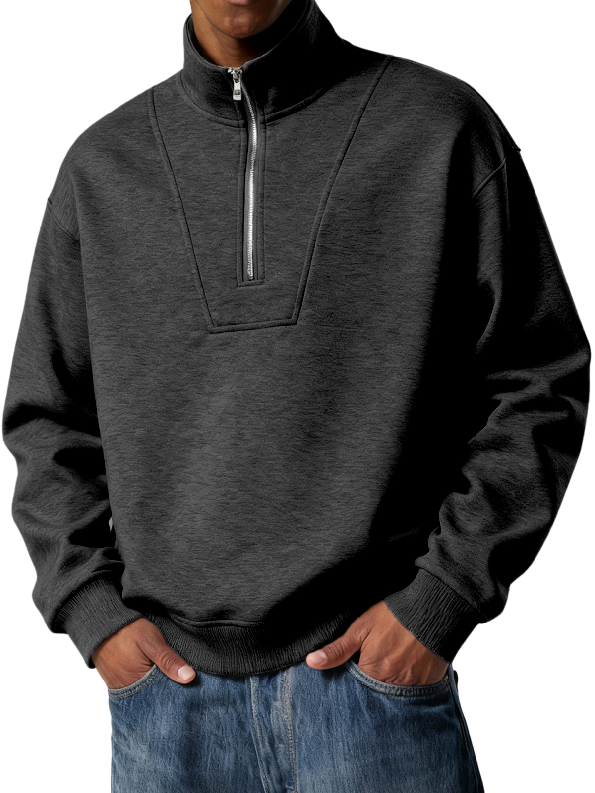 Men's Simple Quarter Zip Casual Pullover POLO Shirt