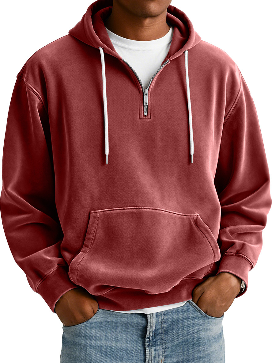Men's Simple Suede Casual Zipper Hooded Sweatshirt