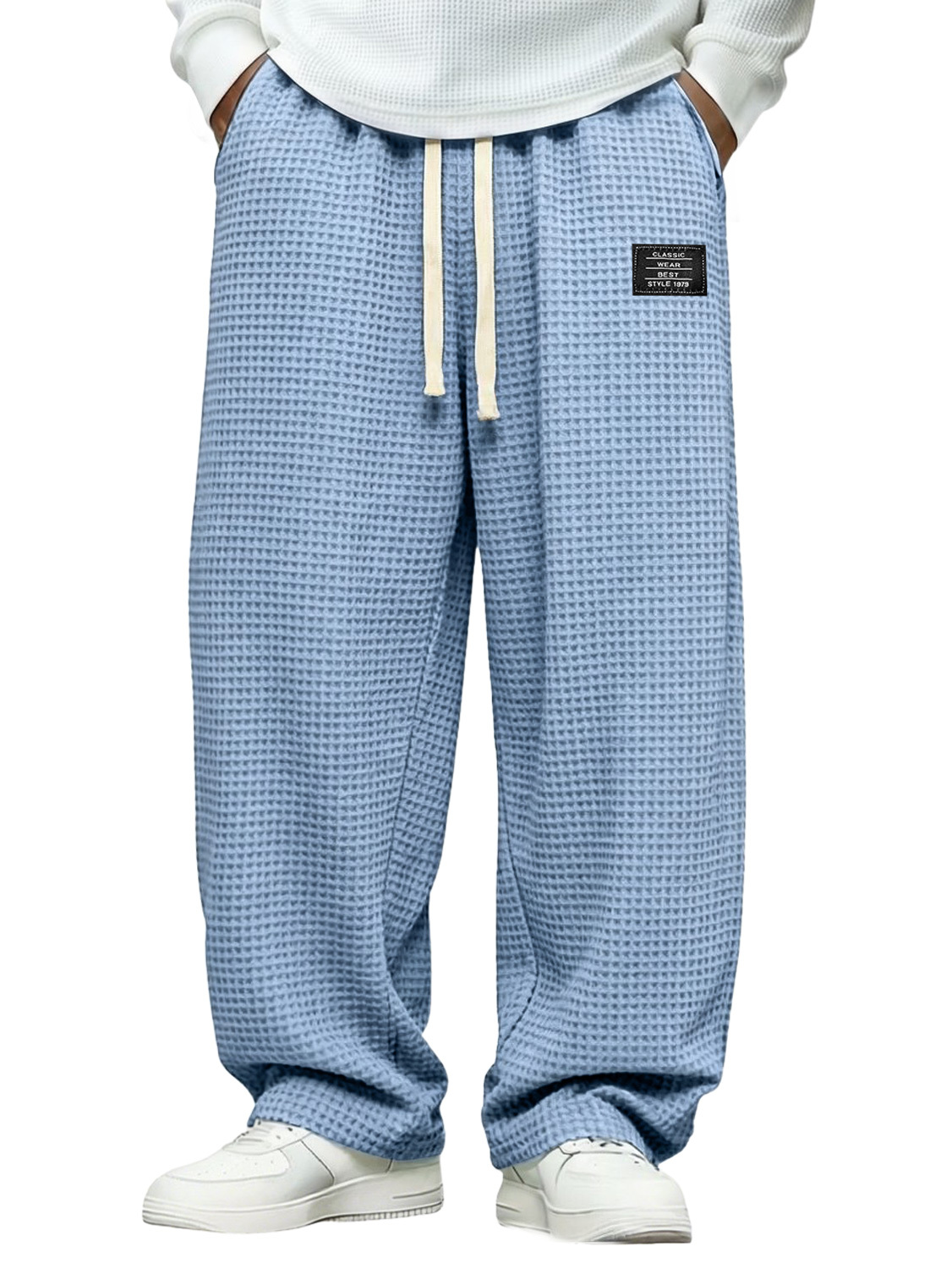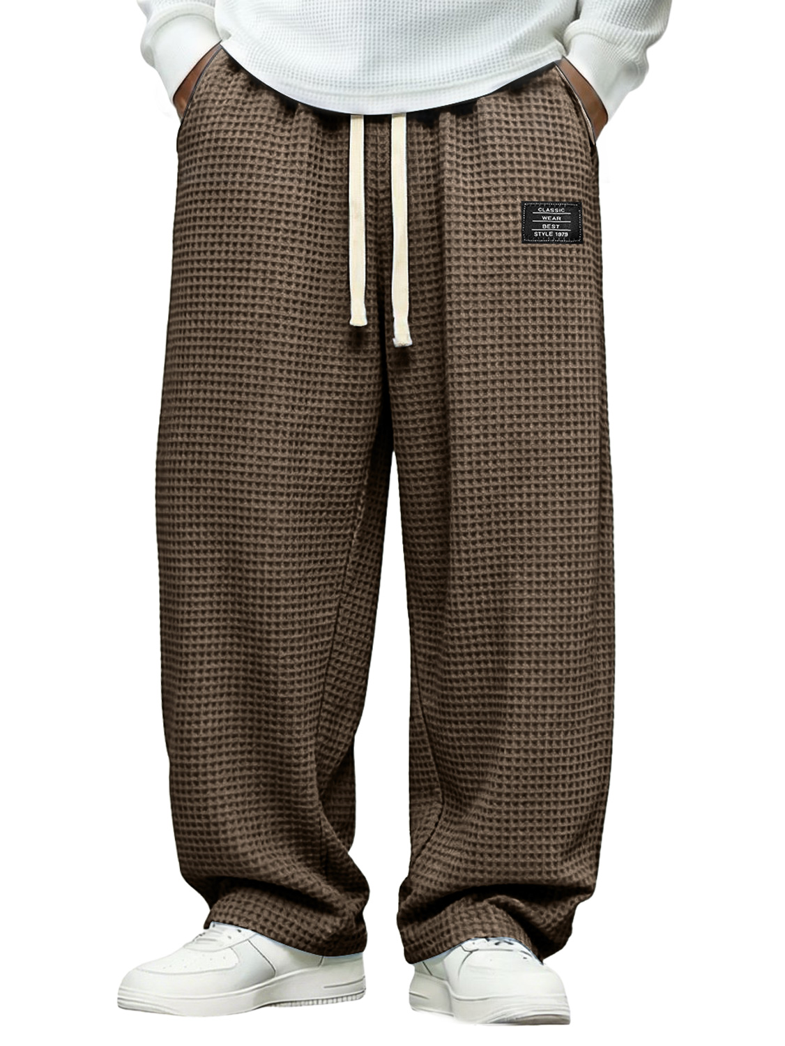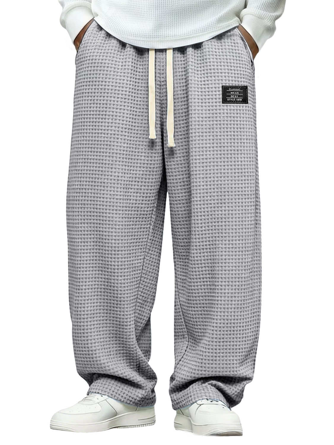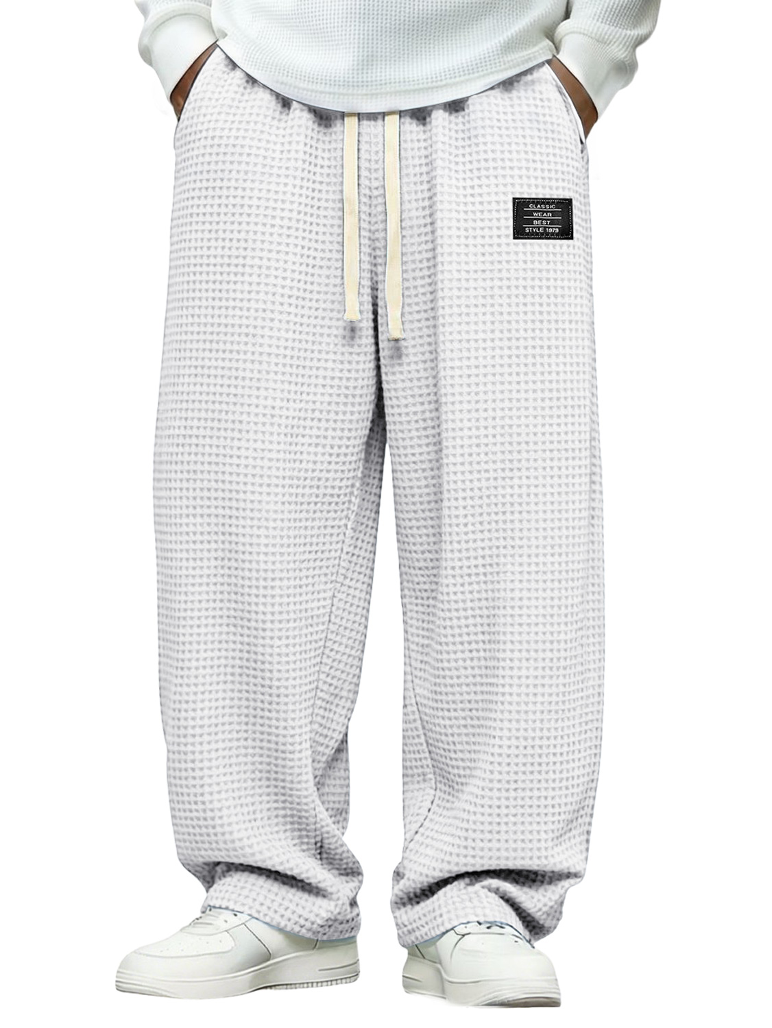 Men's Simple Waffle-knit Casual Loose-fitting Trousers With Embroidered Logo