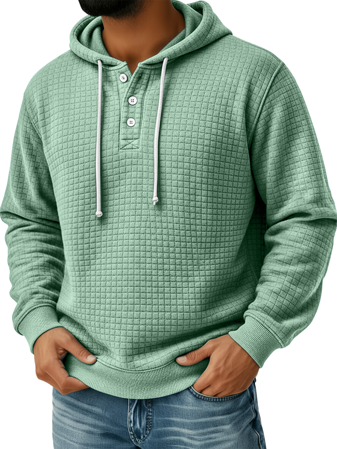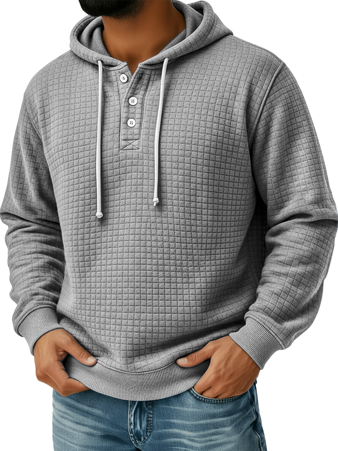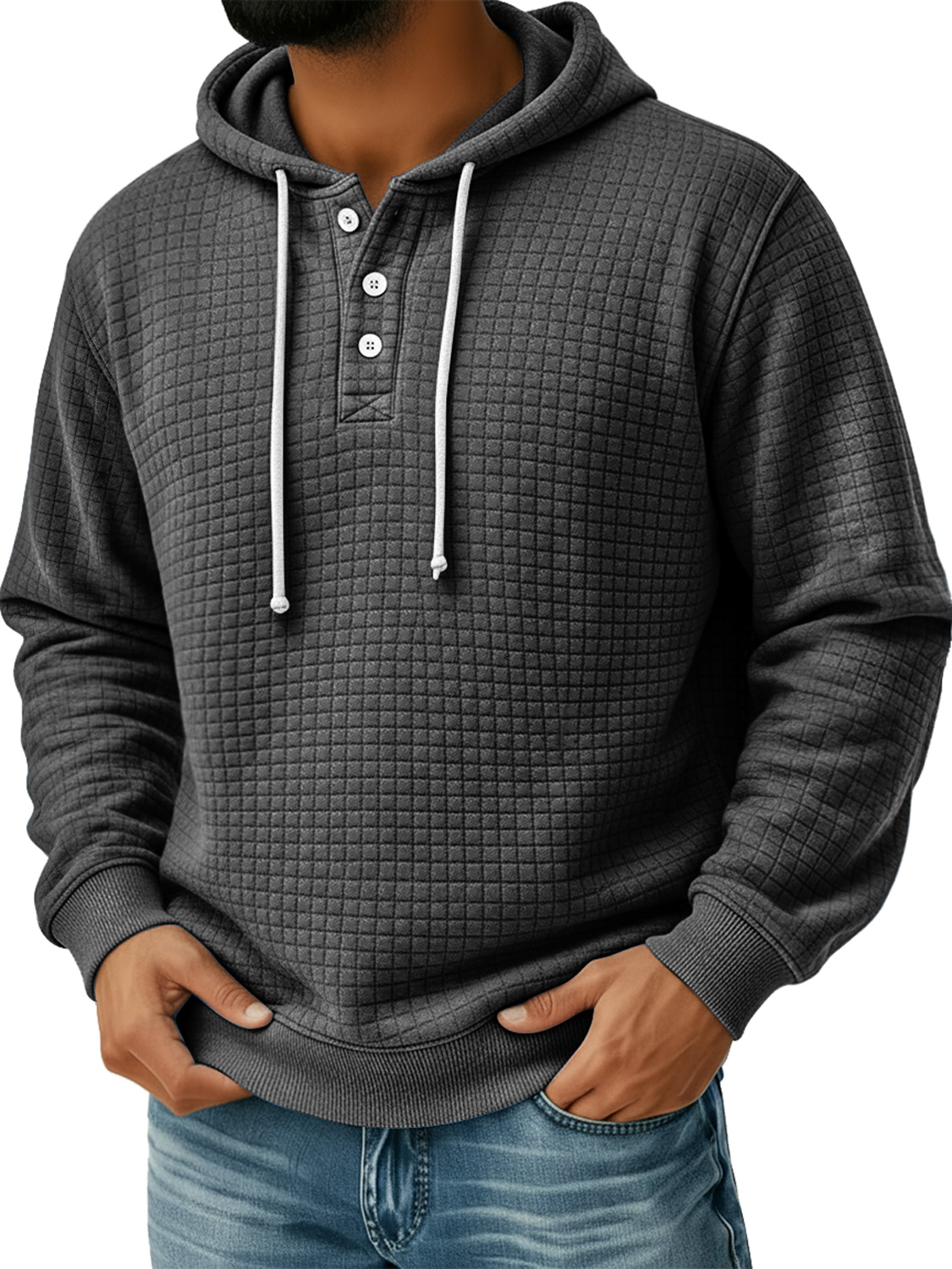 Men's Small Plaid Button Hooded Casual Loose Sweatshirt
