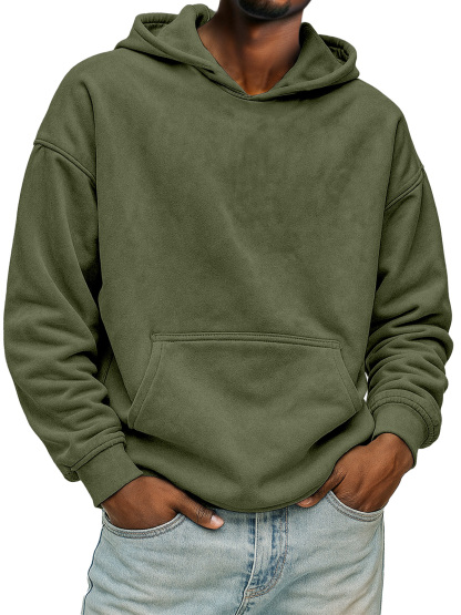 Men's Solid Color Suede Casual Hooded Sweatshirt