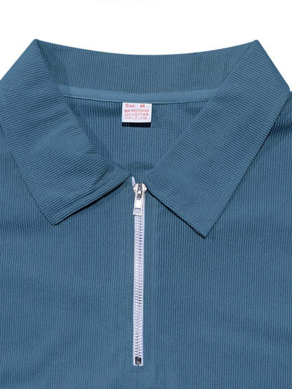Men's striped solid color zipper lapel short sleeve polo shirt