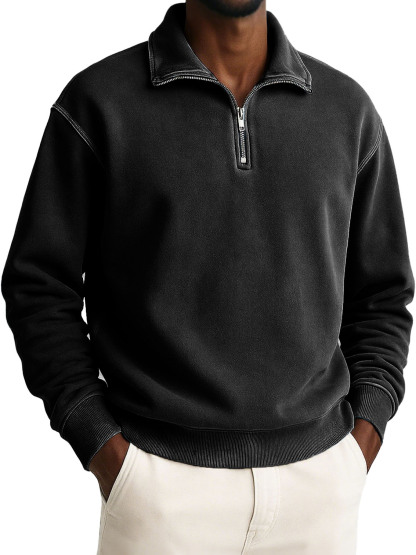 Men's Stylish Casual Retro Half-zip Stand-up Collar Loose-fitting Multicolor Long-sleeved Stand-up Collar Sweatshirt