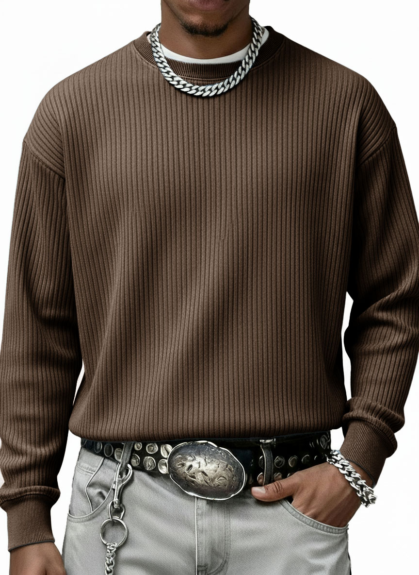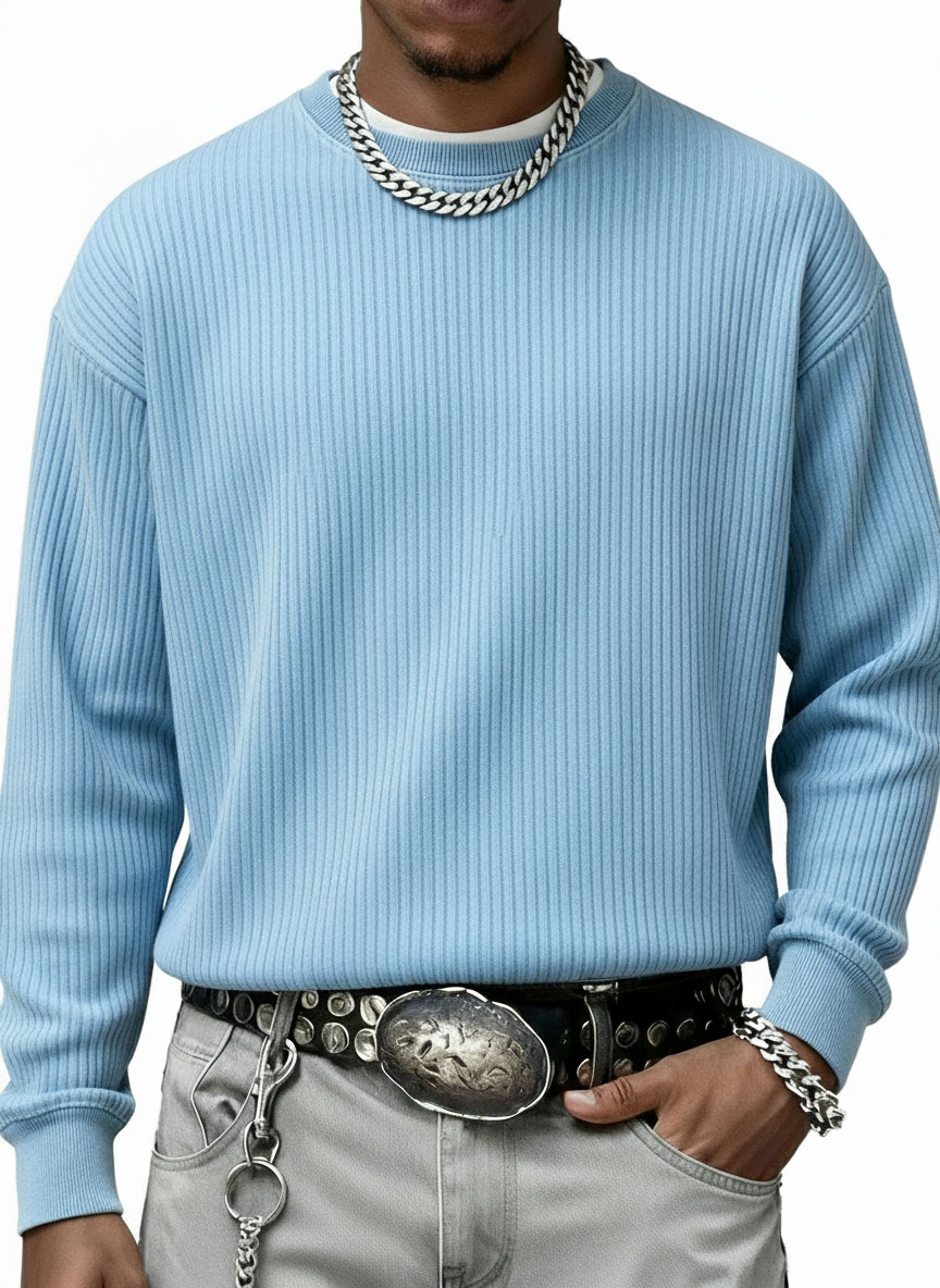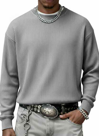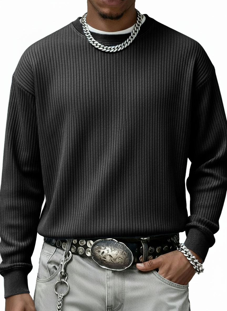 Men's Stylish Casual Vintage Crewneck Ribbed Fabric Long-sleeved Base T-shirt