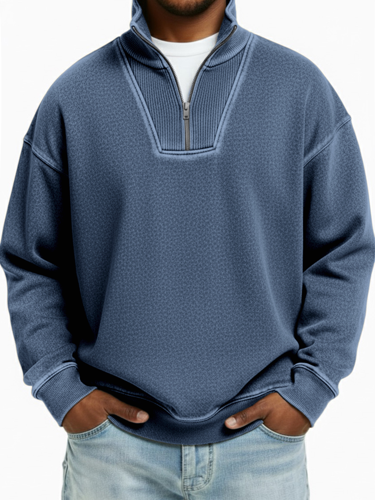 Men's Vintage Quarter-zip Patchwork Design Pullover