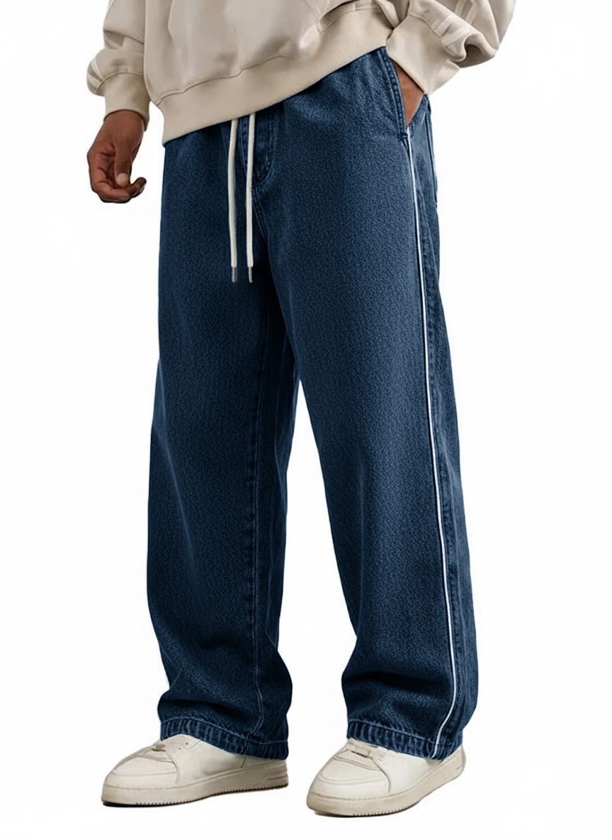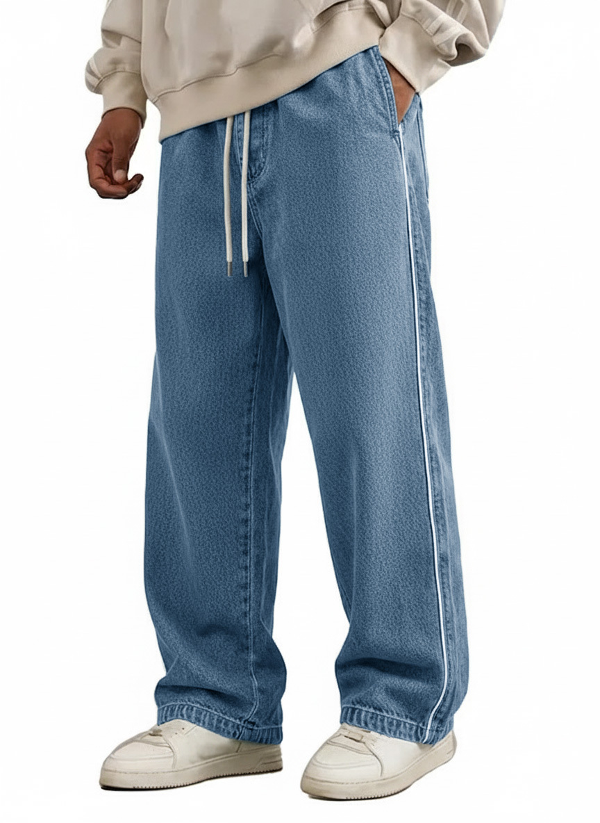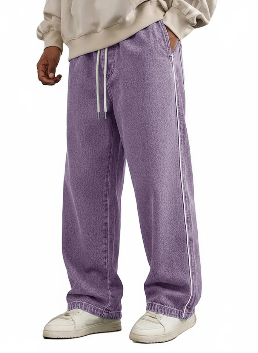 Men's Wear Retro Fashion Vintage Loose Pockets Elastic Waist Tether Pants