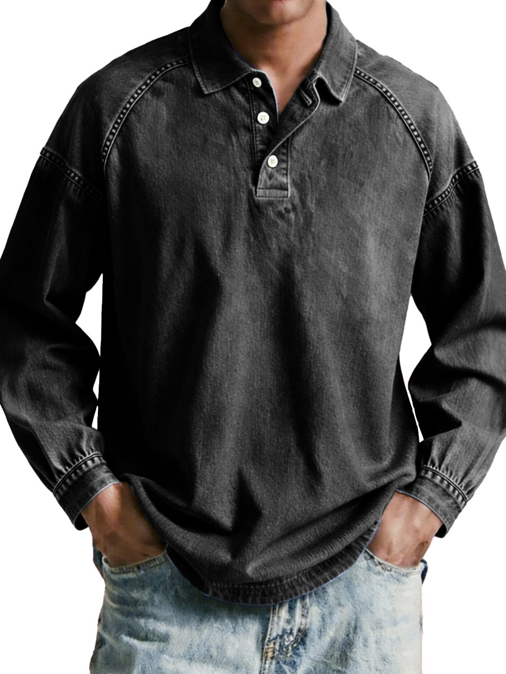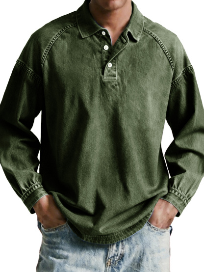 Men's wear, retro, retro, loose, raglan, long-sleeved polo shirt