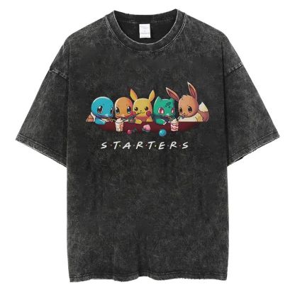 Pokemon Starters Anime Oversize Washed T-Shirt